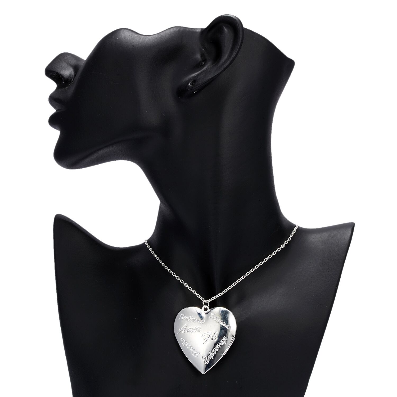 送料無料 ハート型のペンダントが付いたチェーンネックレスは、開くことができるポーフレームに刻まれた愛の信仰希望ロケットペンダントネックレスファミリーギフト レース アクセサリー AE1332221646282249611