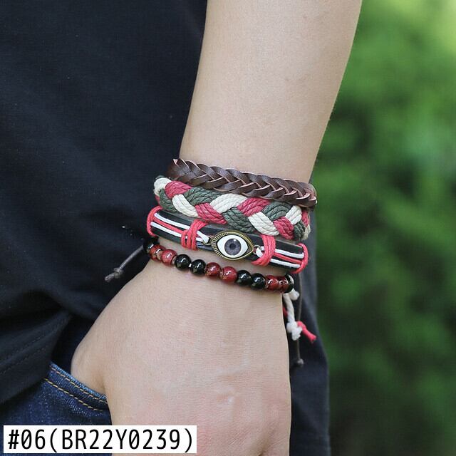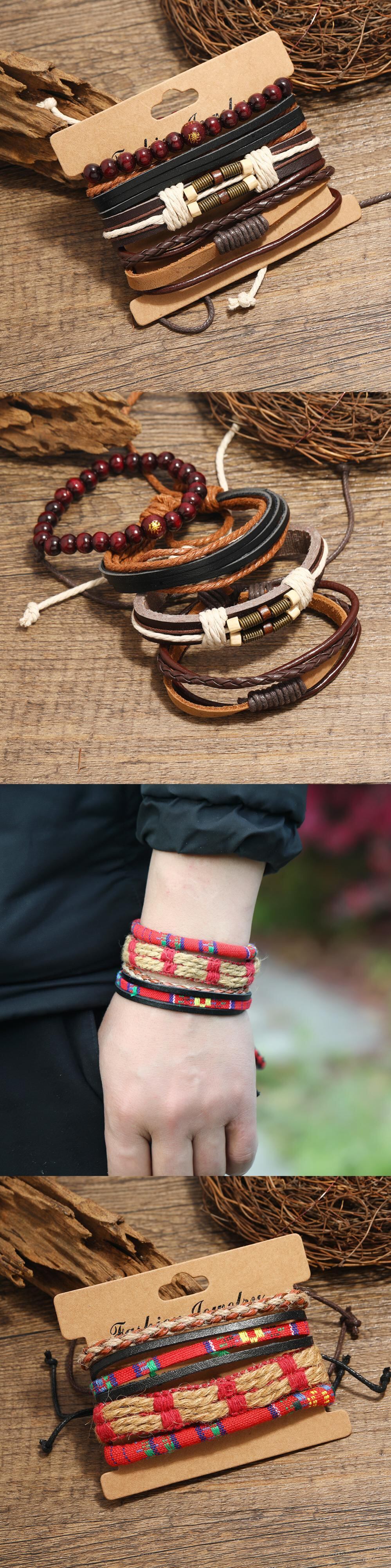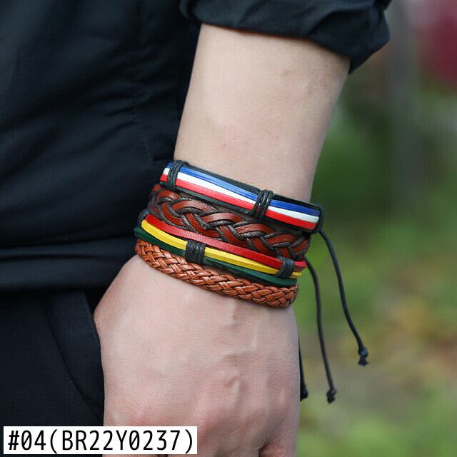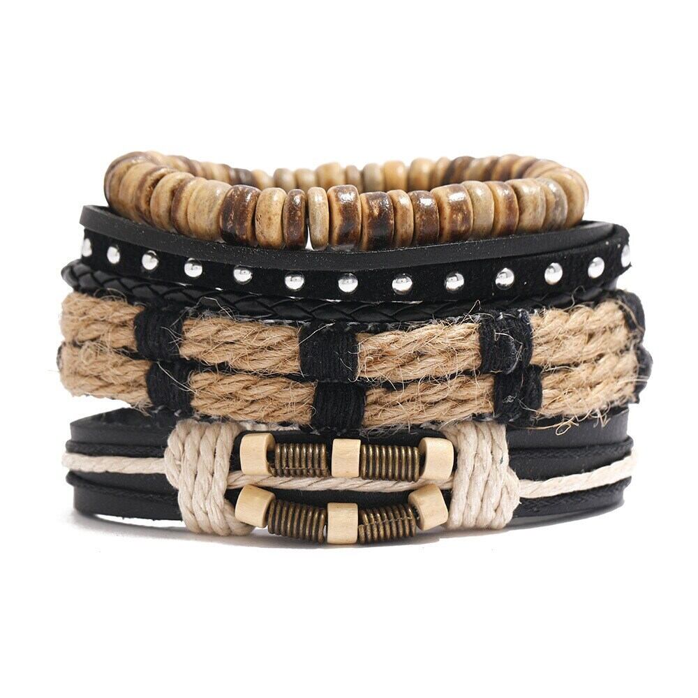 送料無料 ヴィンテージウッドビーズブレスレットメンズパンク手編み多層レザーラップブレスレットジュエリー ビンテージ アクセサリー AE1332221655810176072