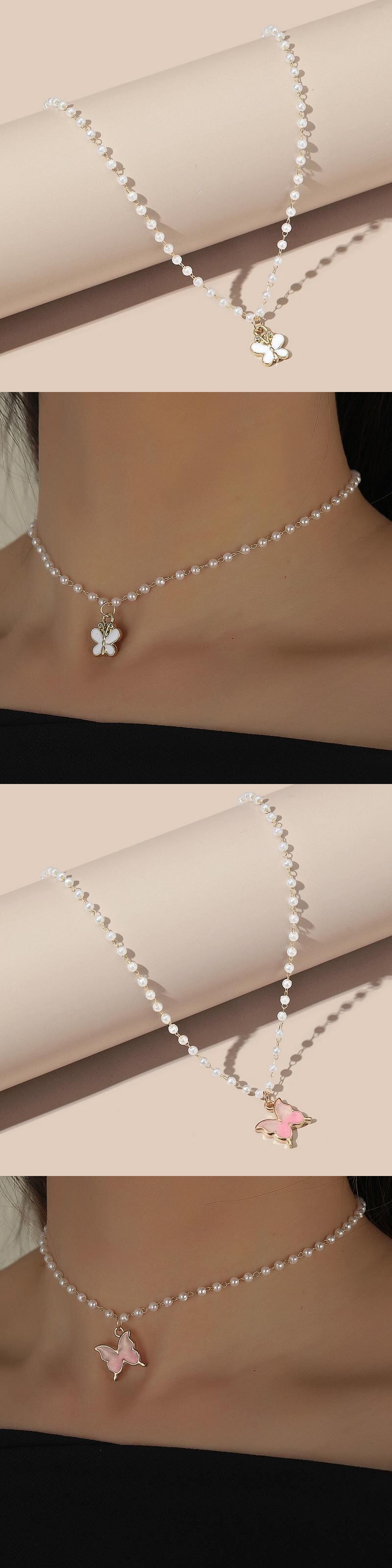 送料無料 チャームデイジーイミテーションパール鎖骨チェーンネックレス女性バタフライチェリーラインストーンペンダントチョーカーネックレス2021 レース 真珠 アクセサリー AE1332221674546027380