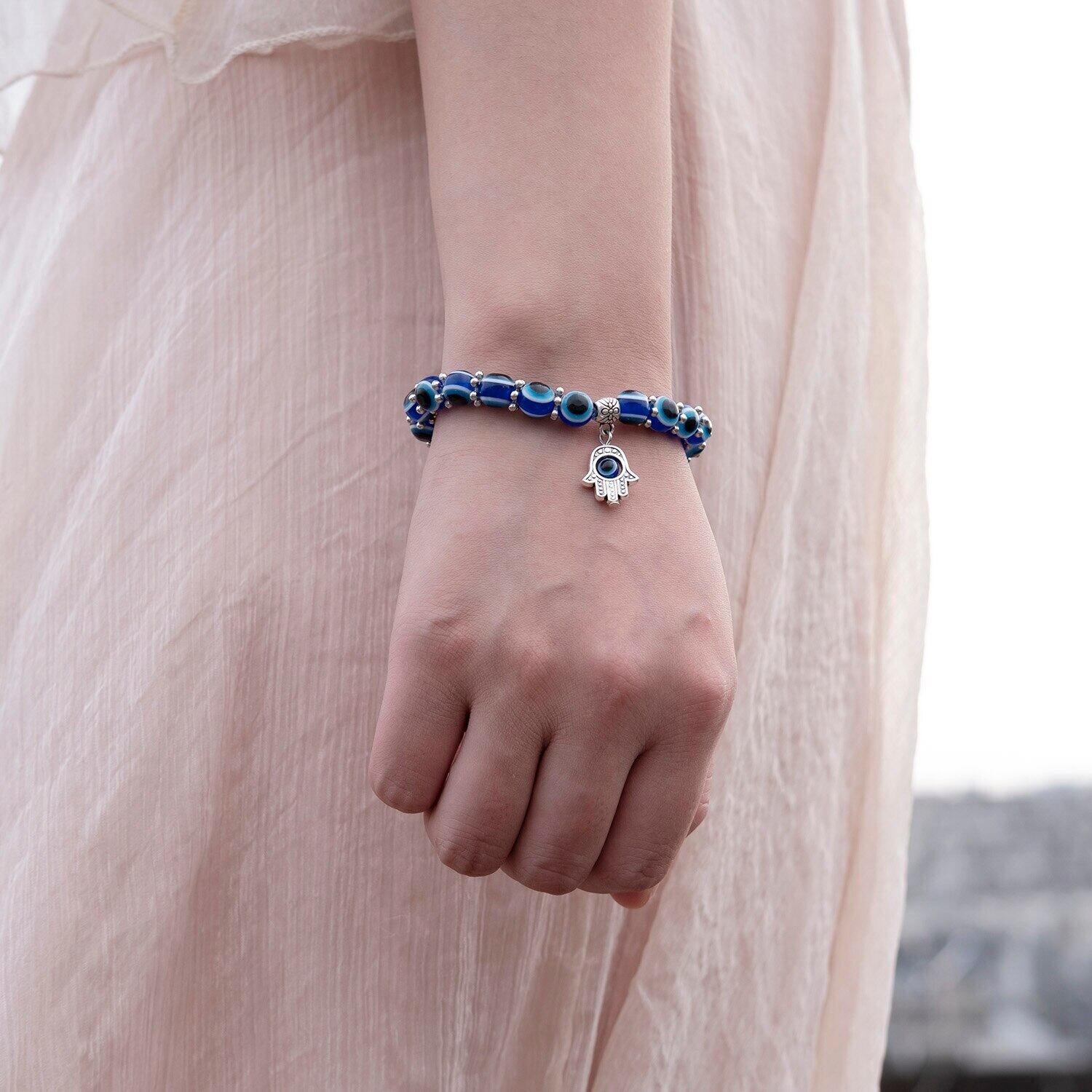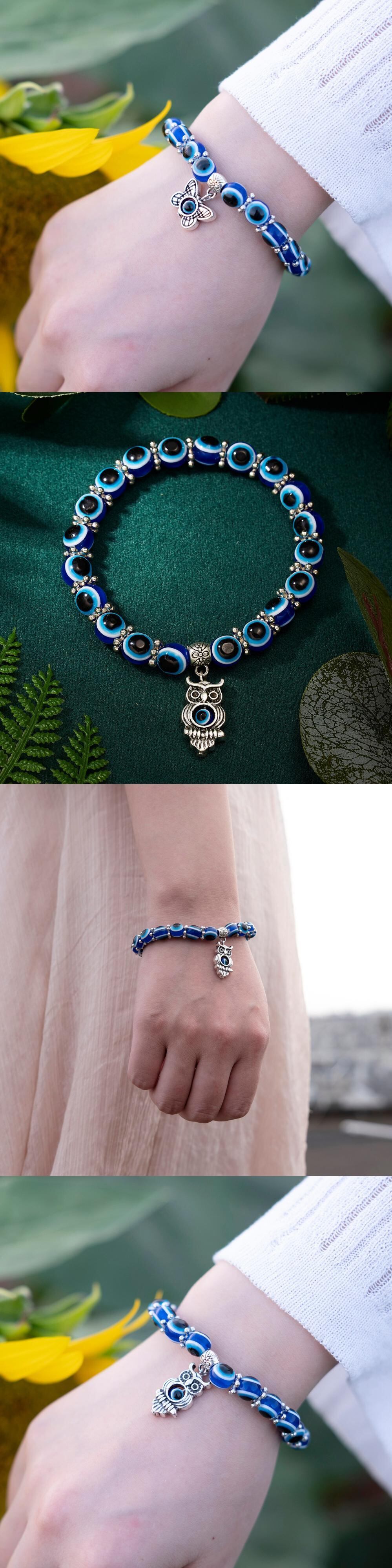 送料無料 ブルーイービルアイバタフライハンドペンダントアジャスタブルロープチェーンブレスレットレディースメンズビーズブレスレットラッキージュエリー アクセサリー AE1332221638988119027