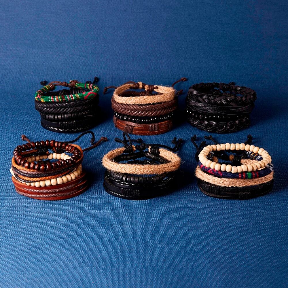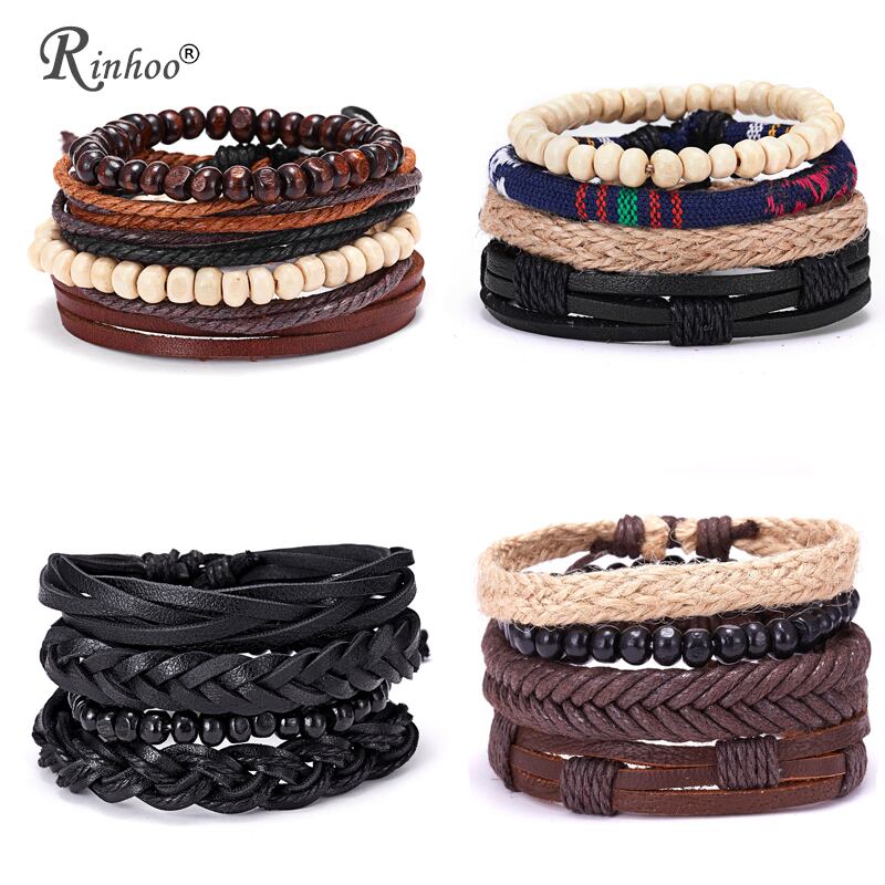 送料無料 RINHOOヴィンテージレザーブレスレットメンズボヘミア多層ビーズラップパンクロープジュエリーバレンタインデーギフトブレスレットバングル マルチレイヤー ビンテージ アクセサリー AE1332221639860270608