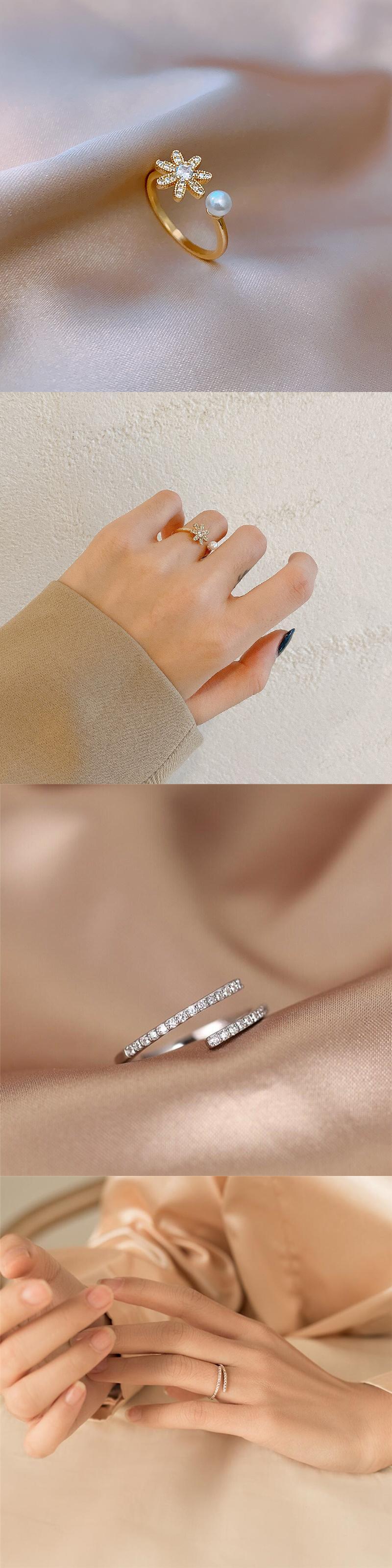 送料無料 金メッキシンプルな幾何学的な中空ハートジルコンオープニングリング女性絶妙な結婚記念日ジュエリー 指輪 アクセサリー AE1332221624565306629