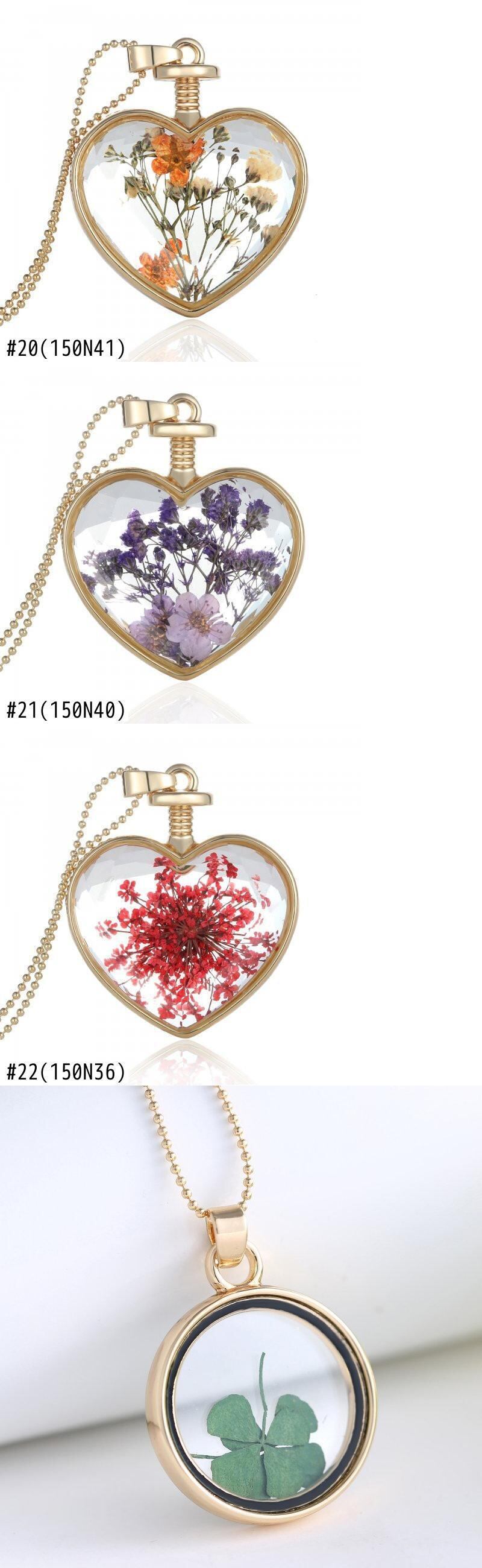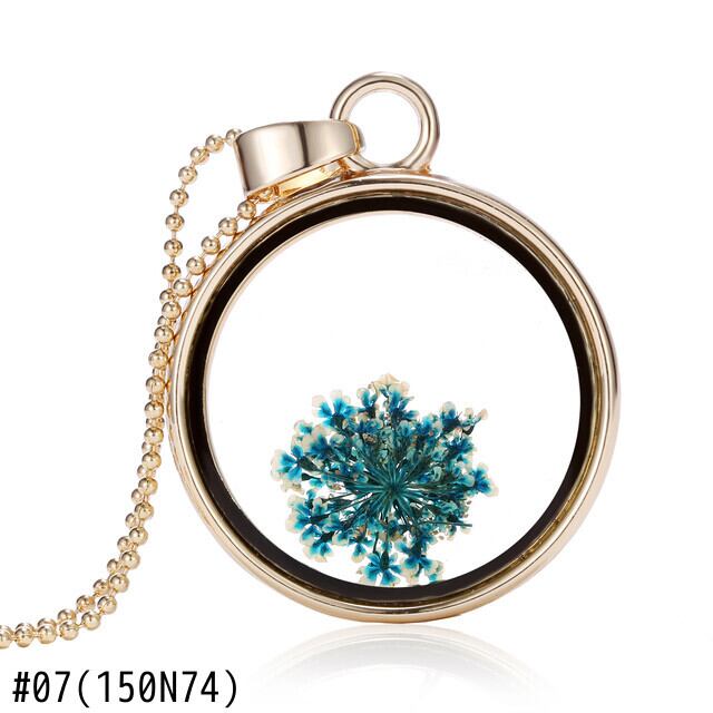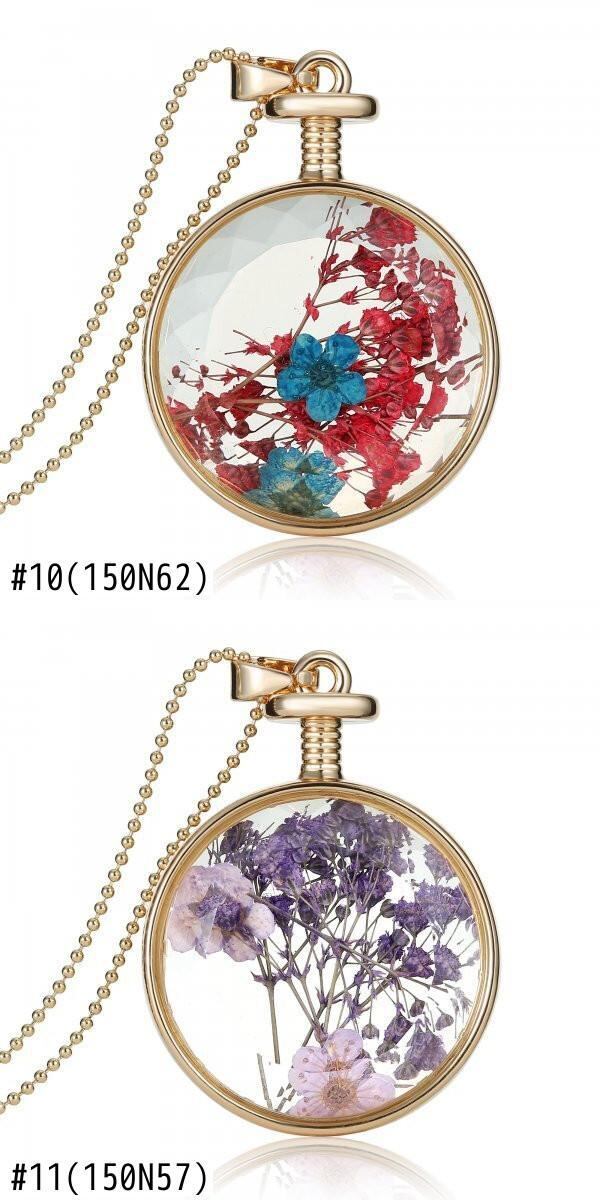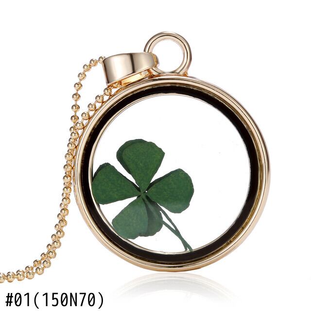 送料無料 手作りナチュラルリアルドライフラワーラッキー四つ葉のクローバーレジンラウンドGl35MMロケットペンダントネックレスレディースジュエリー レース フラワーデザイン 天然 アクセサリー AE1332221623866645424