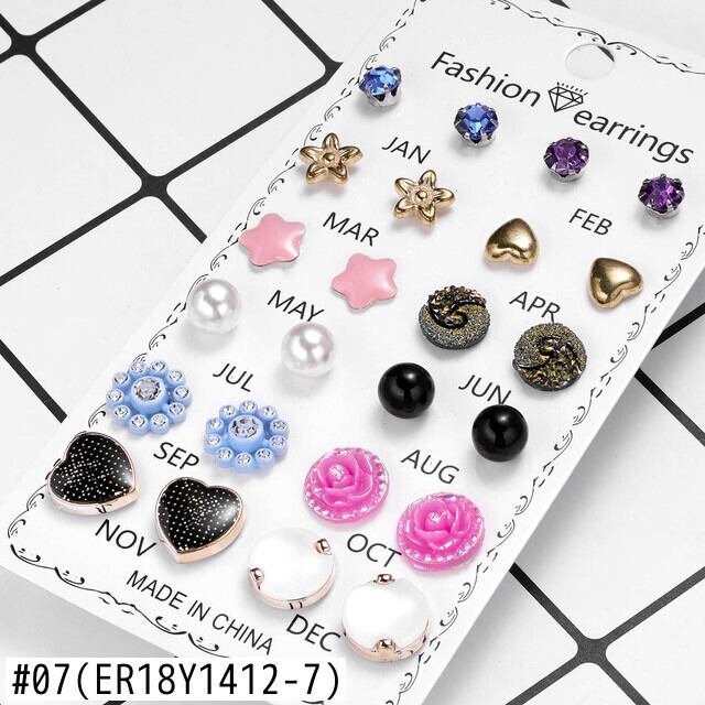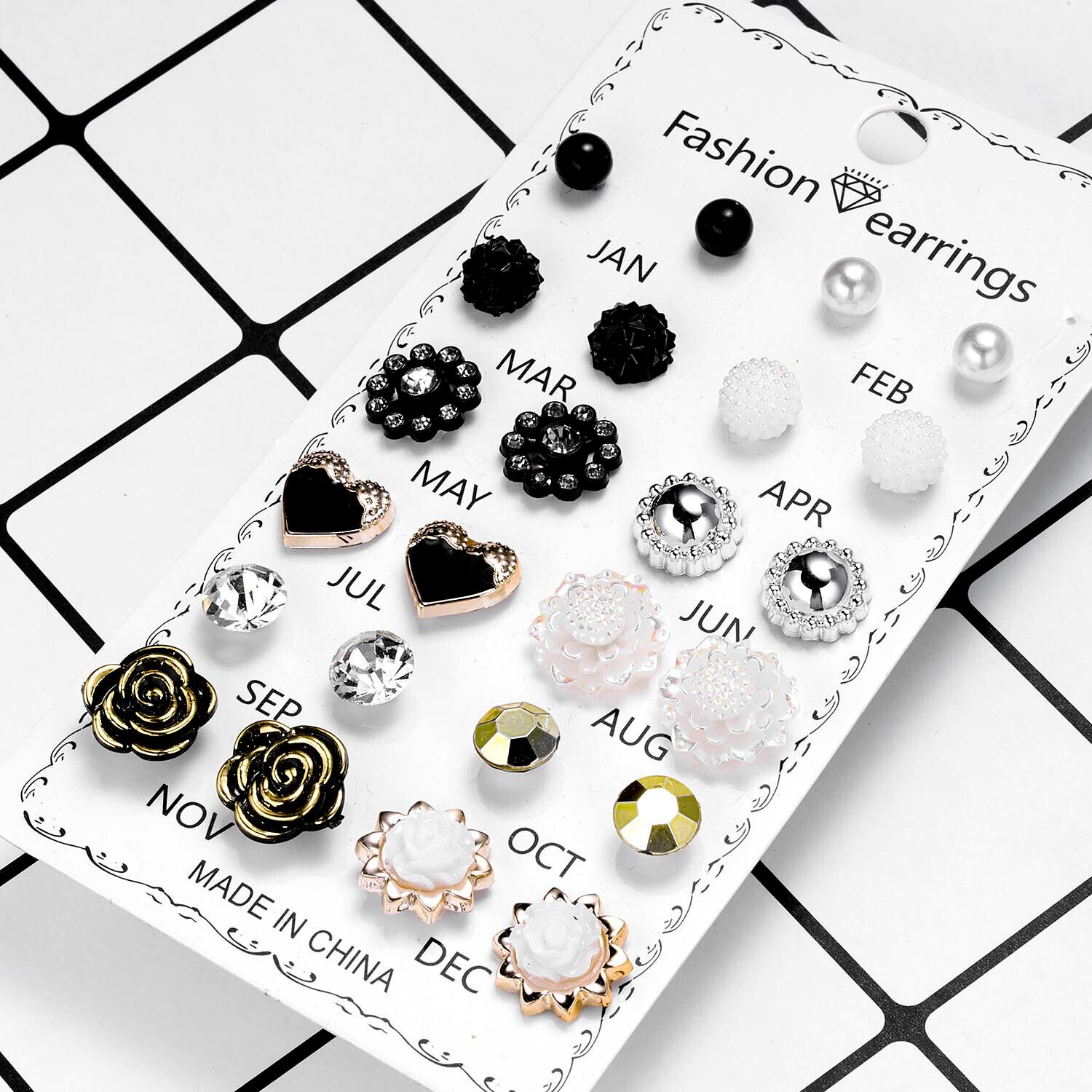 送料無料 12ペア/セットクリスタルラウンドスタッドピアスセット女性フラワーボウフロストボールピアスピアスキットジュエリー リボン イヤリング リング 指輪 フラワーデザイン アクセサリー AE1332221698682800605