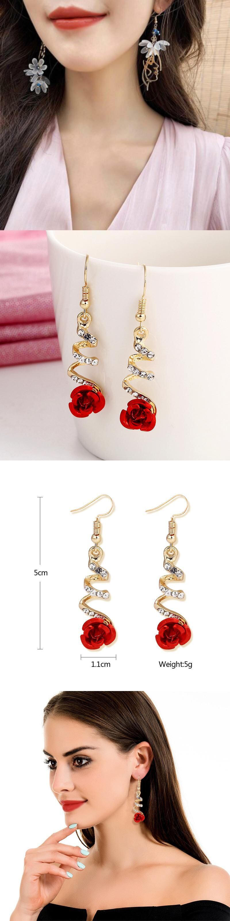 送料無料 ローズフラワーラインストーンロングテルピアス女性ピアスダングルピアスジュエリービジュー イヤリング リング 指輪 フラワーデザイン アクセサリー AE1332221615933816394