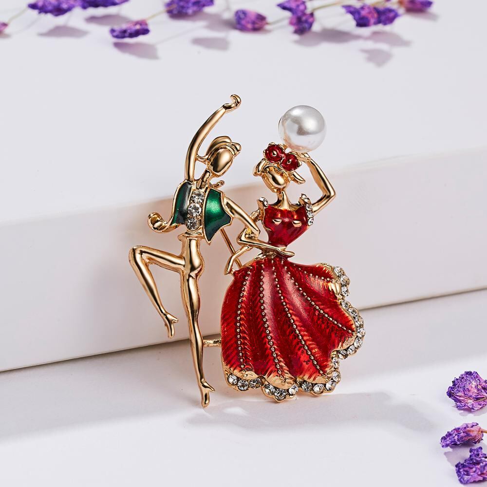 送料無料 RINHOOラインストーンバレエダンスガールズブローチクリスタルエナメルブローチ女性かわいいピンコサージュウェディングジュエリーギフト 大人ガーリー スウィート キュート カジュアル アクセサリー AE133222164256809493