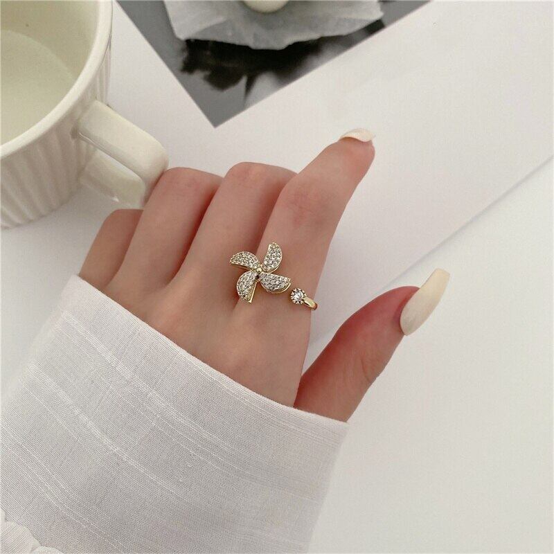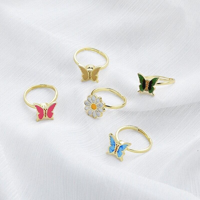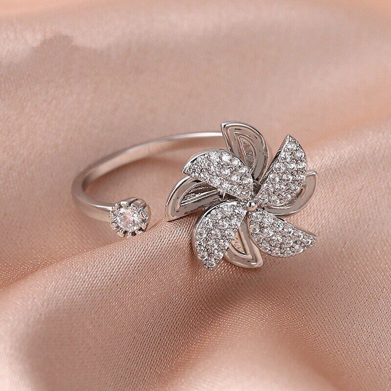 送料無料 スピナーデイジーリングレディースバタフライ自由に回転不安緩和オープニングリング調節可能なアンチストレスジュエリーギフト アジャスタブル 指輪 アクセサリー AE1332221622386095497