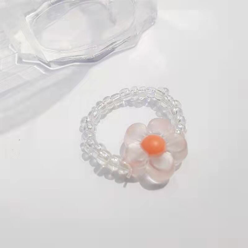 送料無料 2022年夏の花弾性リング女性カラフルな透明ビーズフィンガーリングビーチパーティージュエリーギフト エラスティック 伸縮 サマー 夏物 指輪 フラワーデザイン アクセサリー AE1332221644772970878