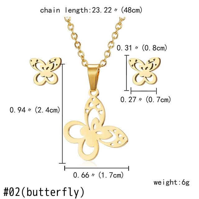 送料無料 かわいい猫の蝶のジュエリーセットステンレス鋼動物インフィニティ8つ星ハートペンダントネックレスイヤリングセット親友ギフト レース 大人ガーリー スウィート キュート カジュアル 指輪 アクセサリー AE1332221625207521702
