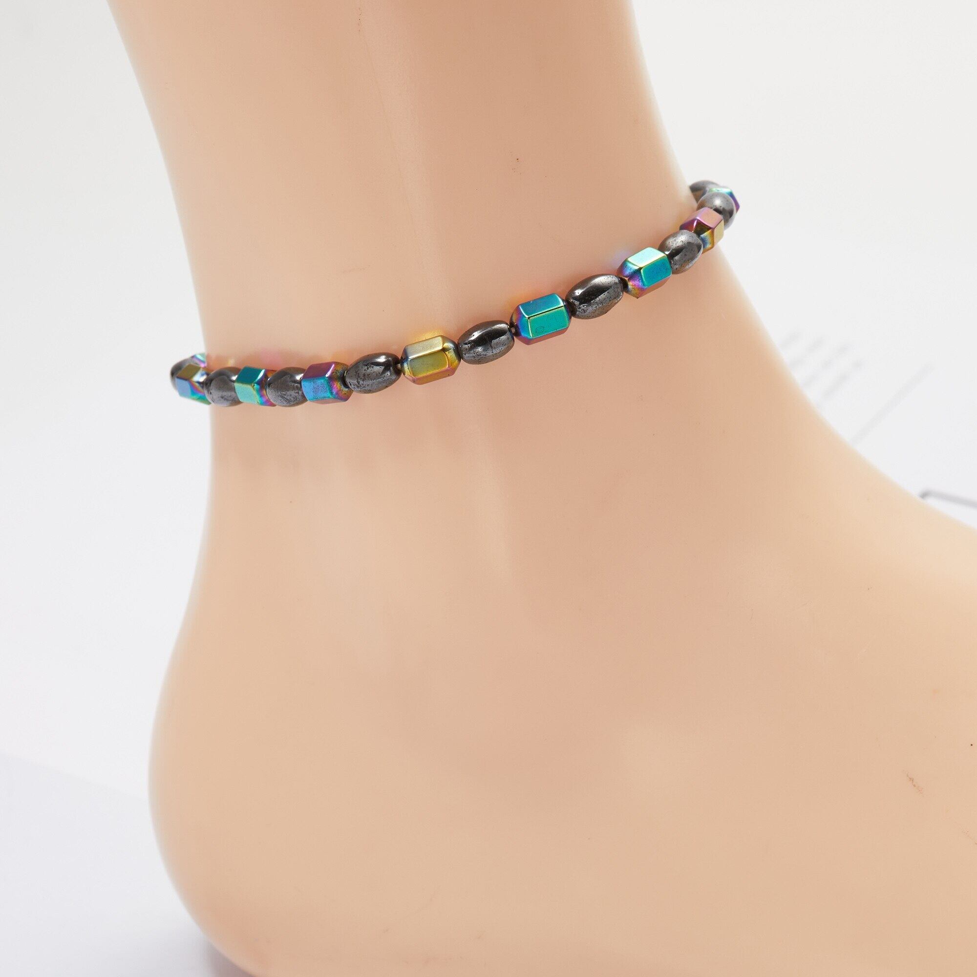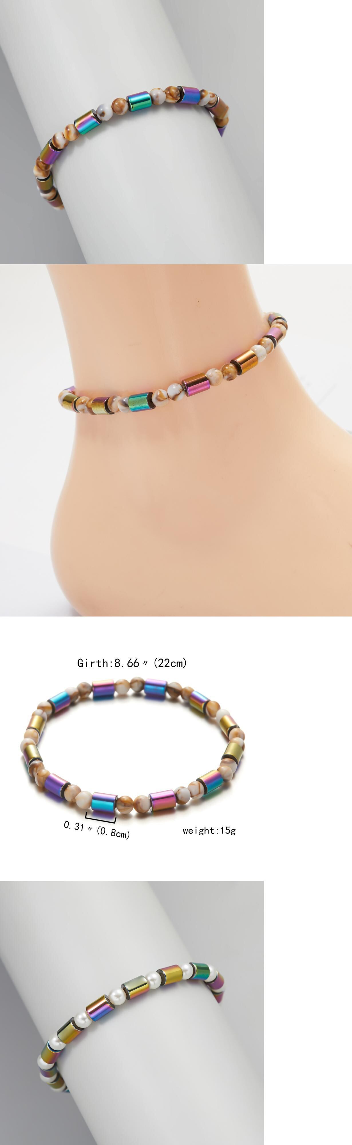 送料無料 シンプルなビーズの磁気弾性アンクレット女性男性黒楕円形五芒星ブレスレット痩身製品ヘルスケア ブラック エラスティック 伸縮 オーバル アクセサリー AE1332221613987177918