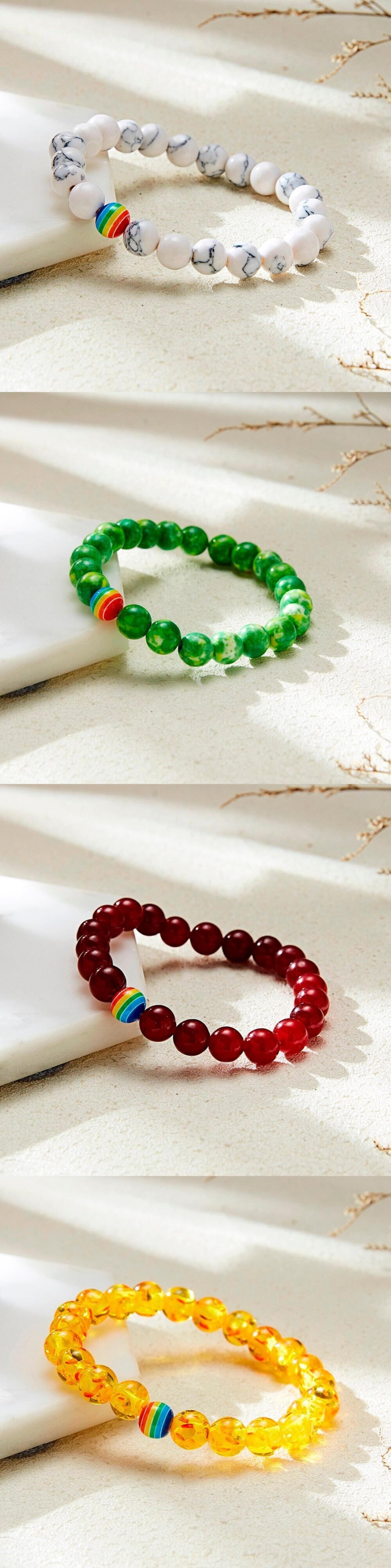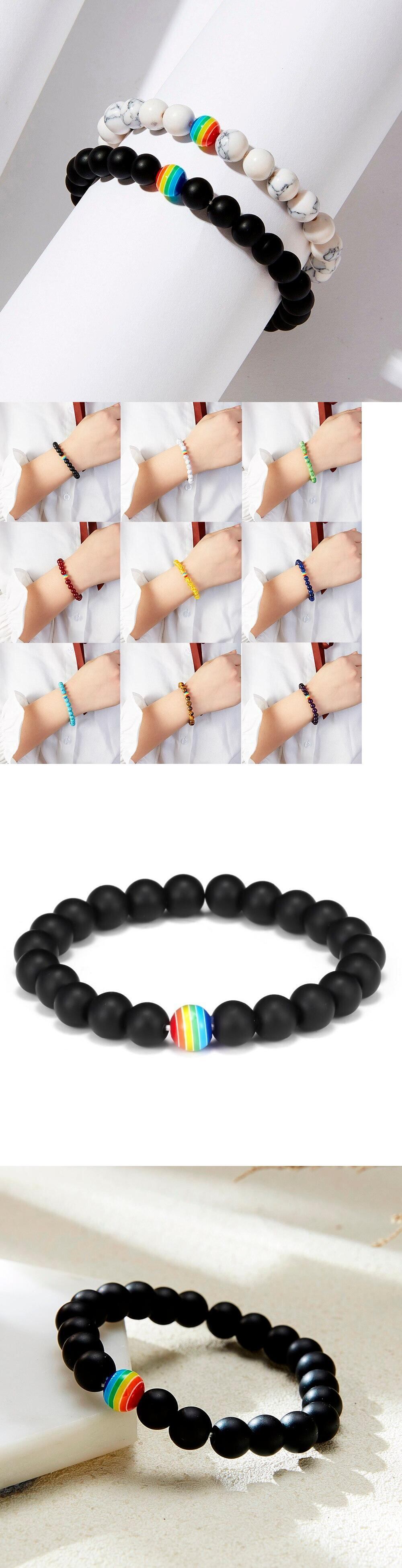 送料無料 リンフーレインボービーズブレスレットプライドタイガーアイナチュラルストーンストランドカップルゲイブレスレット男性LGBT手作りジュエリー9色 天然 アクセサリー AE1332221625241036142