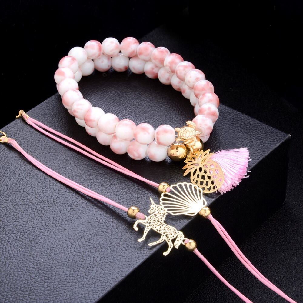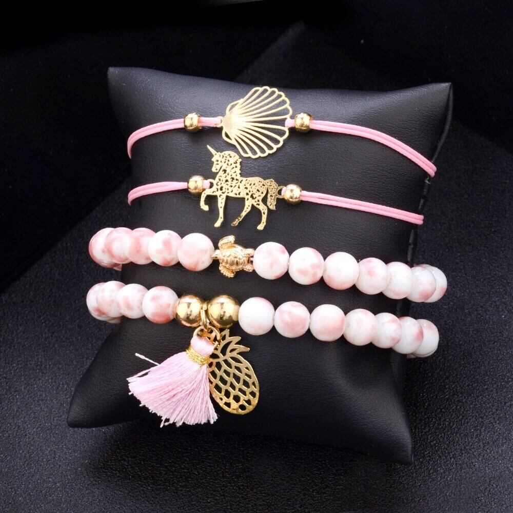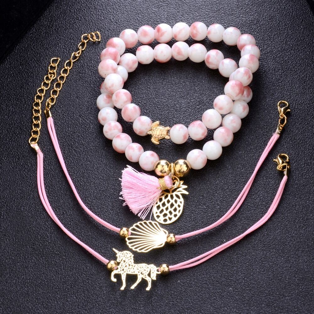 送料無料 RINHOO4pcsパイナップルホースタートルシェルチャームブレスレットセットレディースビーズチェーンロープブレスレットジュエリーギフト アクセサリー AE1332221661104822093