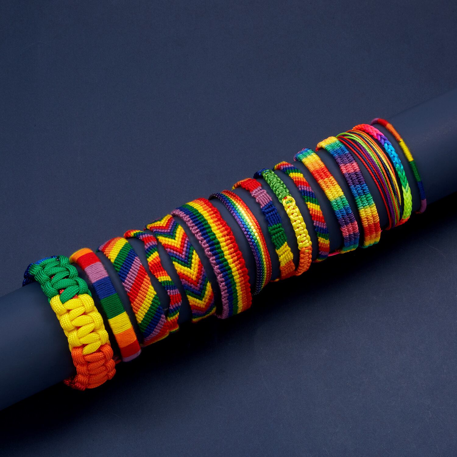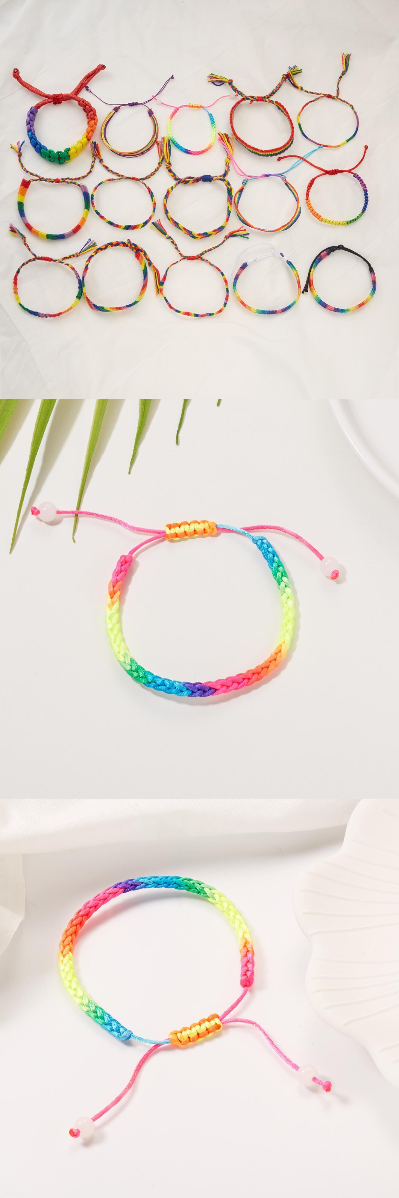 送料無料 ヴィンテージレトロハンドメイドレインボーミックスカラーアジャスタブルウィービングロープチェーンブレスレットレディースメンズチャームLGBTジュエリー ビンテージ アクセサリー AE1332221646372530360