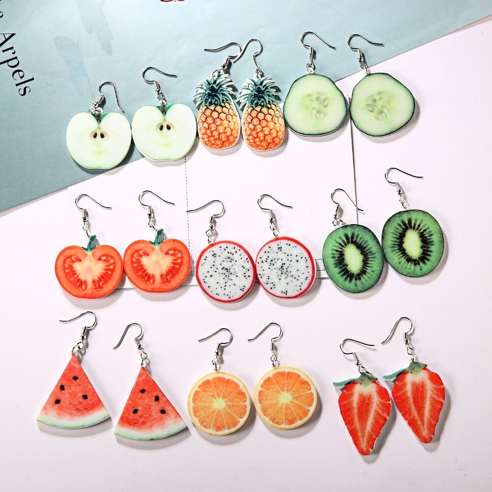 送料無料 RINHOOアクリルフルーツピアスレディースストロベリーパイナップルトマトキウイオレンジキュウリドラゴンアップルパイナップルジュエリーピアス イヤリング リング 指輪 アクセサリー AE1332221648814720175