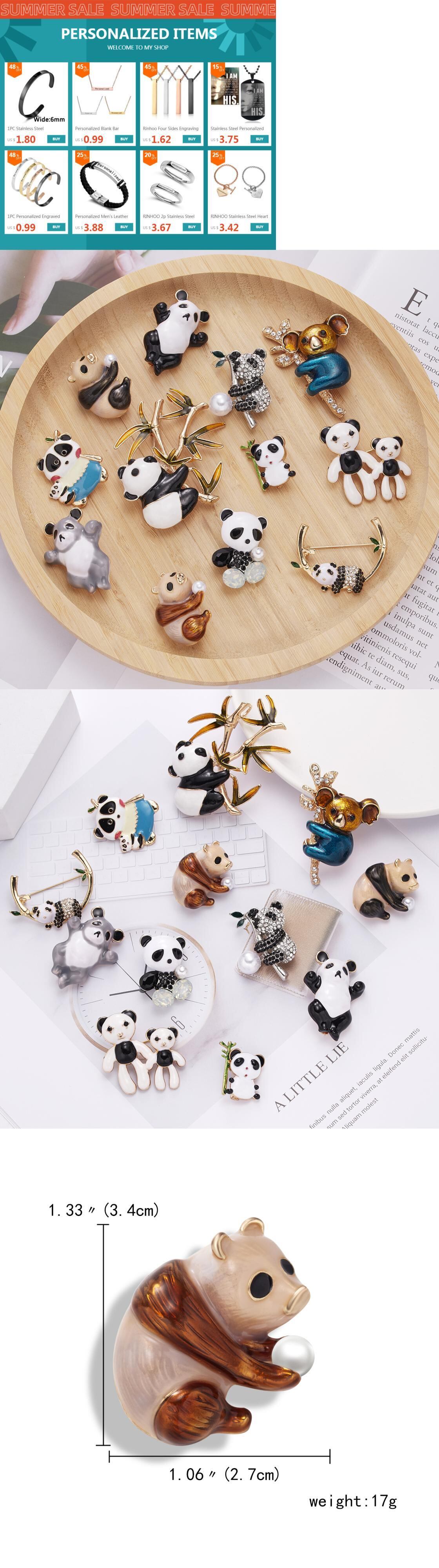 送料無料 かわいい漫画のエナメルピンパナダコアラ竹ブローチラインストーン模造真珠動物のブローチピン女性男性ジュエリー 大人ガーリー スウィート キュート カジュアル パール アクセサリー AE1332221688164731729