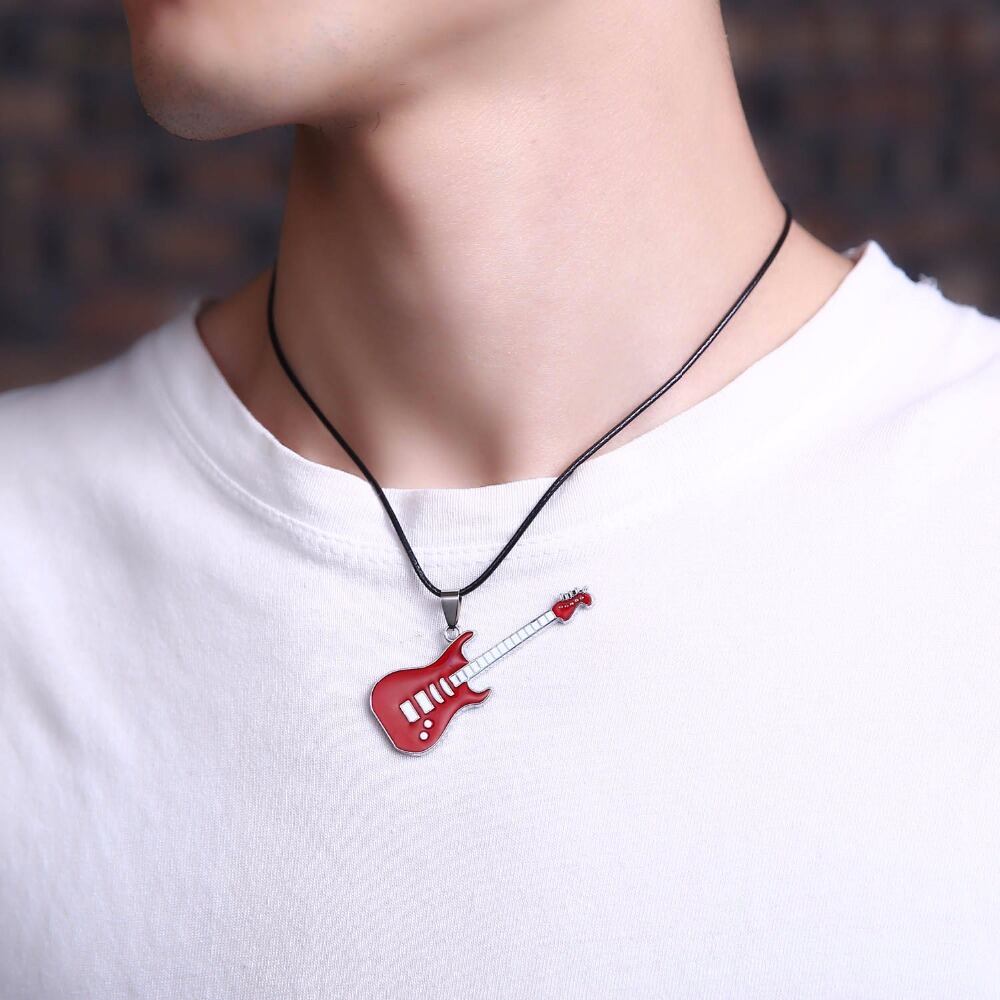 送料無料 リンフートレンディレザーチェーンギターネックレスメンズパンクロックミュージックジュエリーギフトステンレススチールネックレスペンダント レース アクセサリー AE1332221613457715608