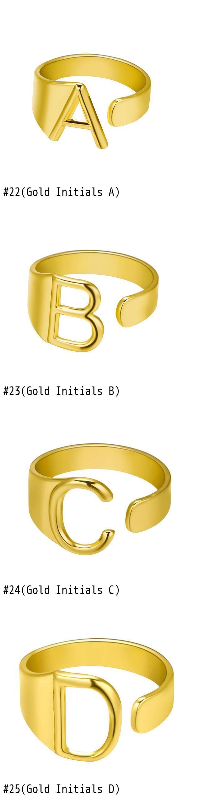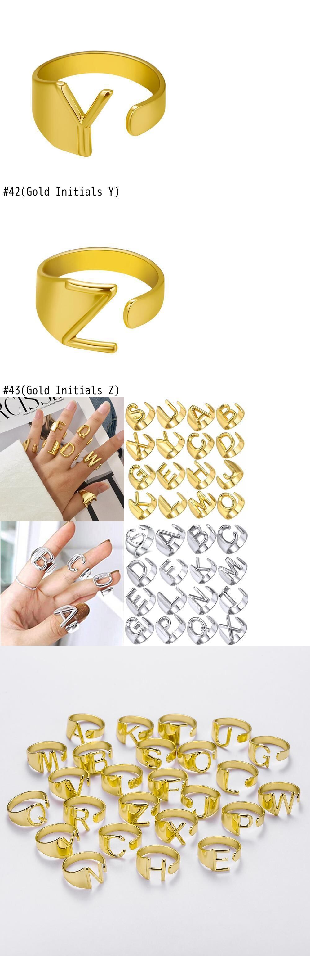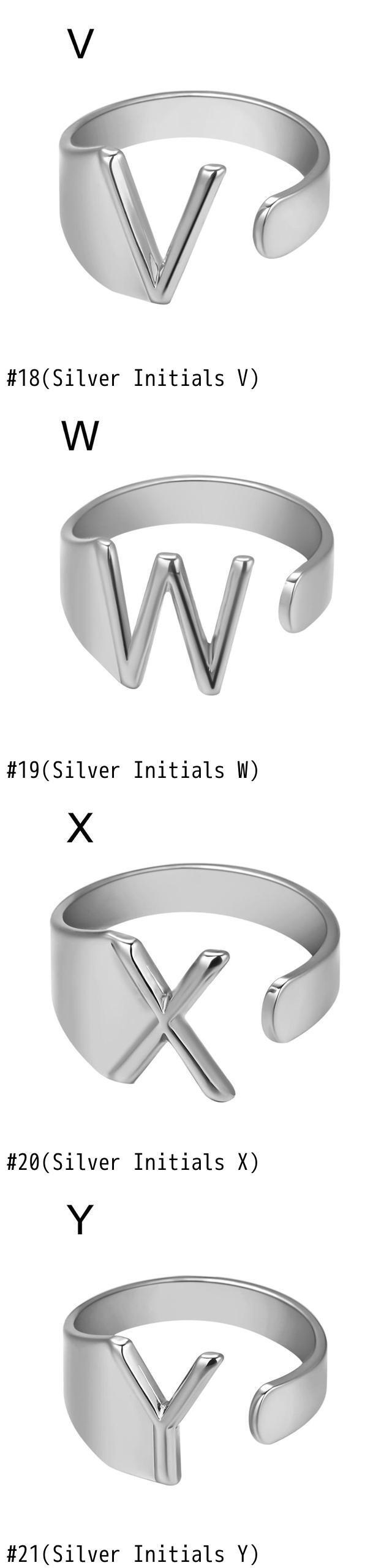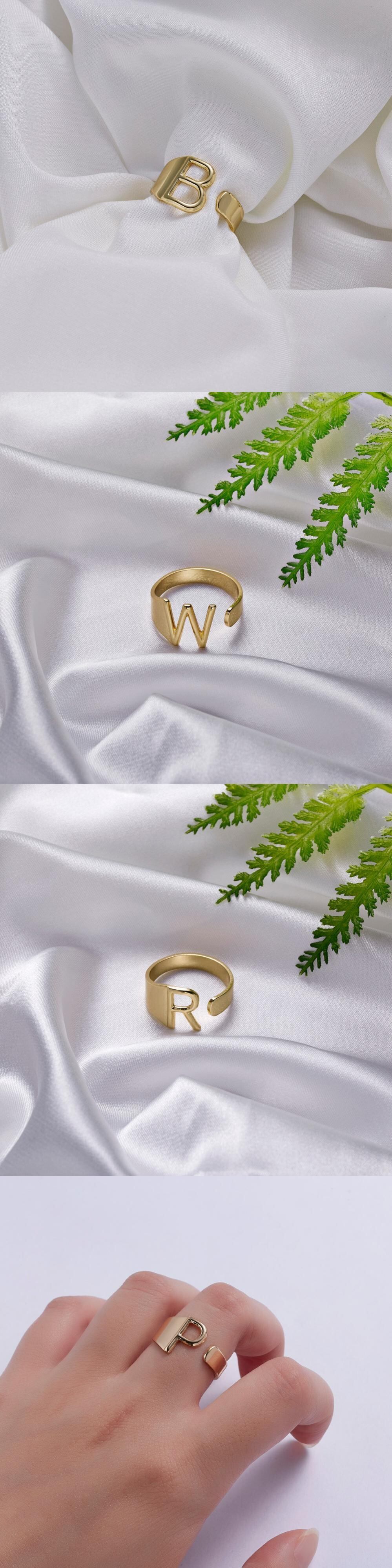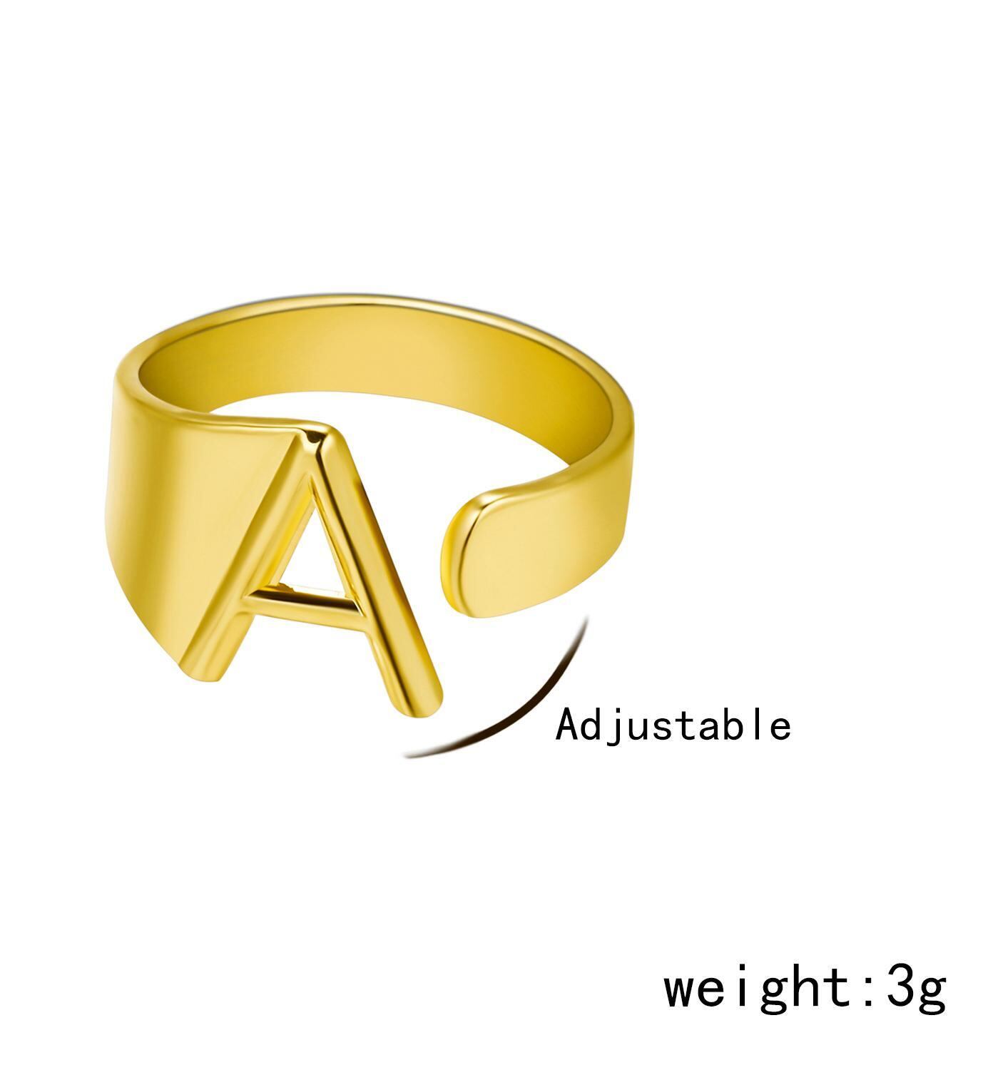 送料無料 分厚いワイドホローA-Zレター3色メタルアジャスタブルオープニングリングイニシャル名前アルファベットパーティージュエリー 指輪 アクセサリー AE1332221692551451979