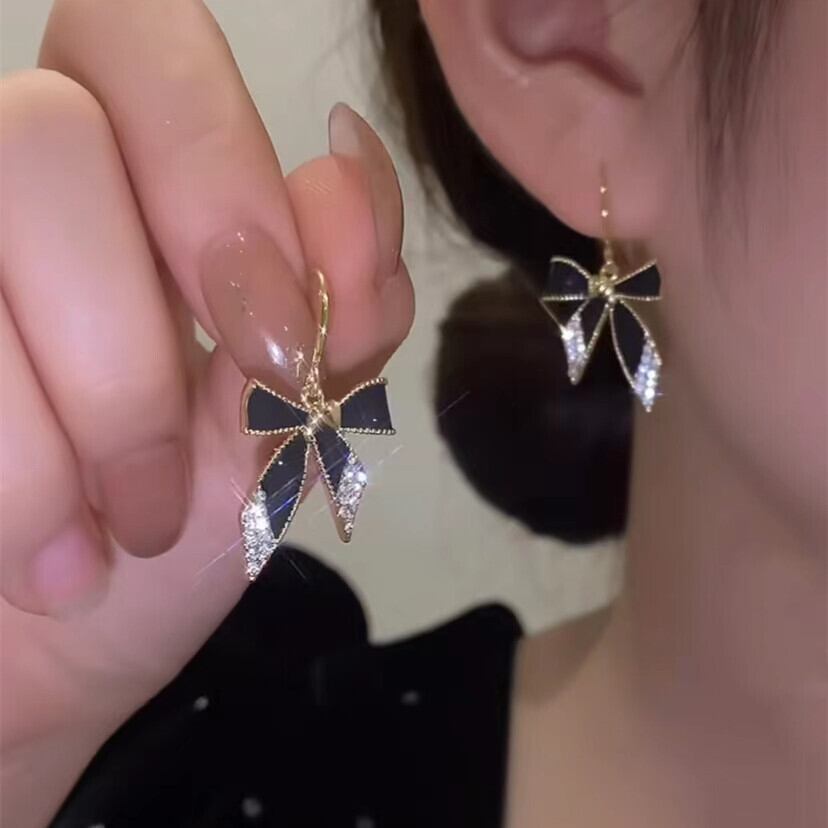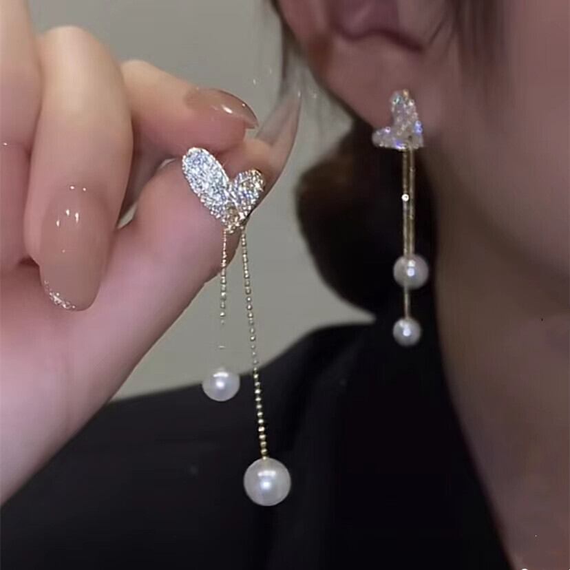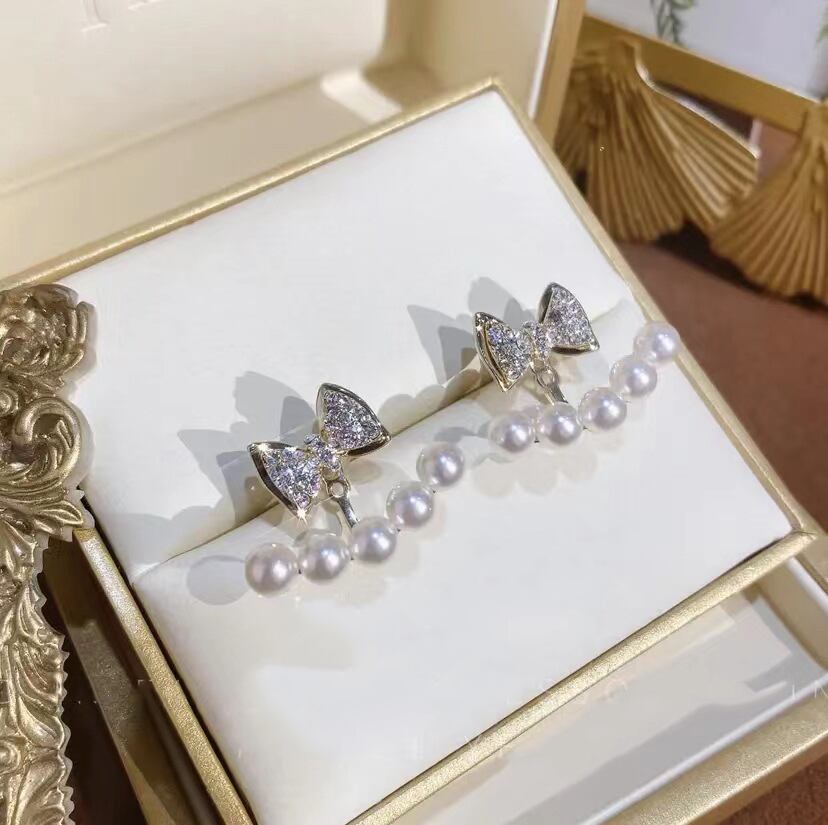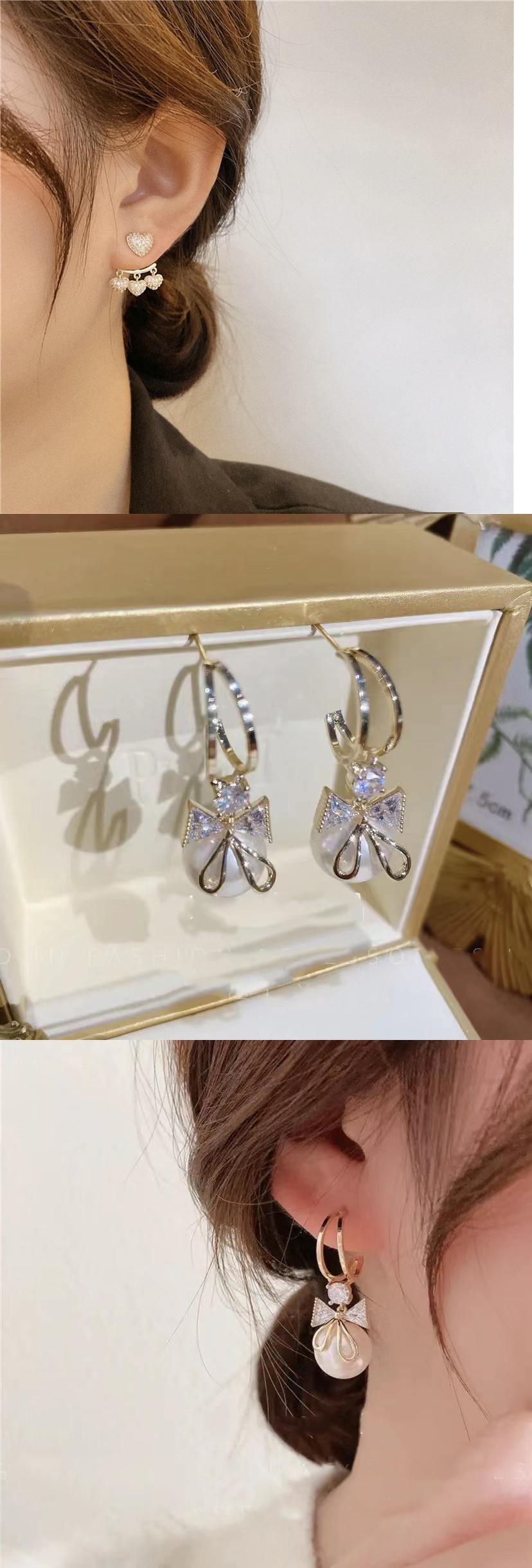 送料無料 ジルコンハートバタフライノットピアス女性銅イミテーションパールテルボウノットダングルピアスジュエリーギフト リボン イヤリング 真珠 アクセサリー AE1332221670632610001