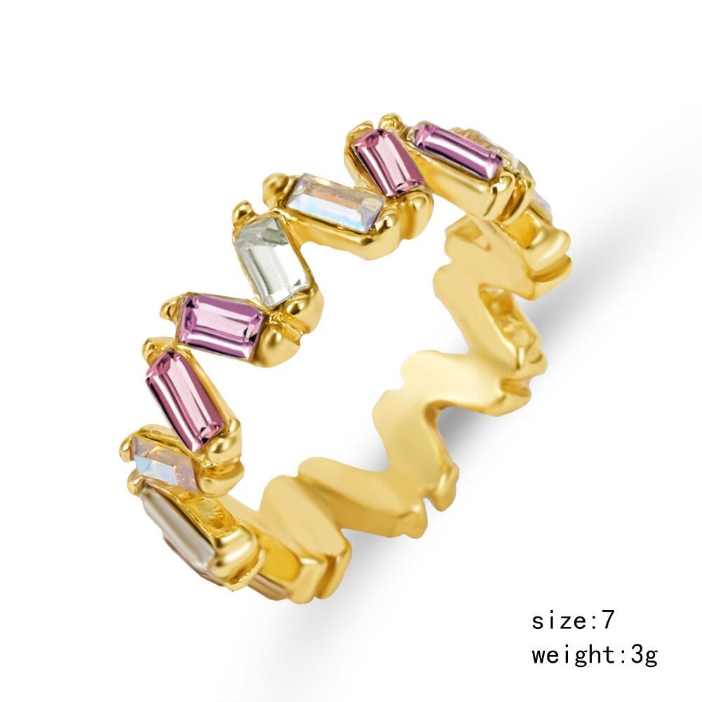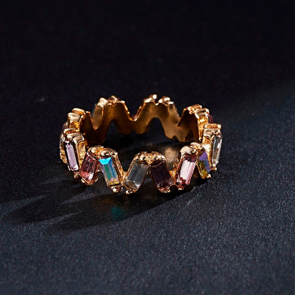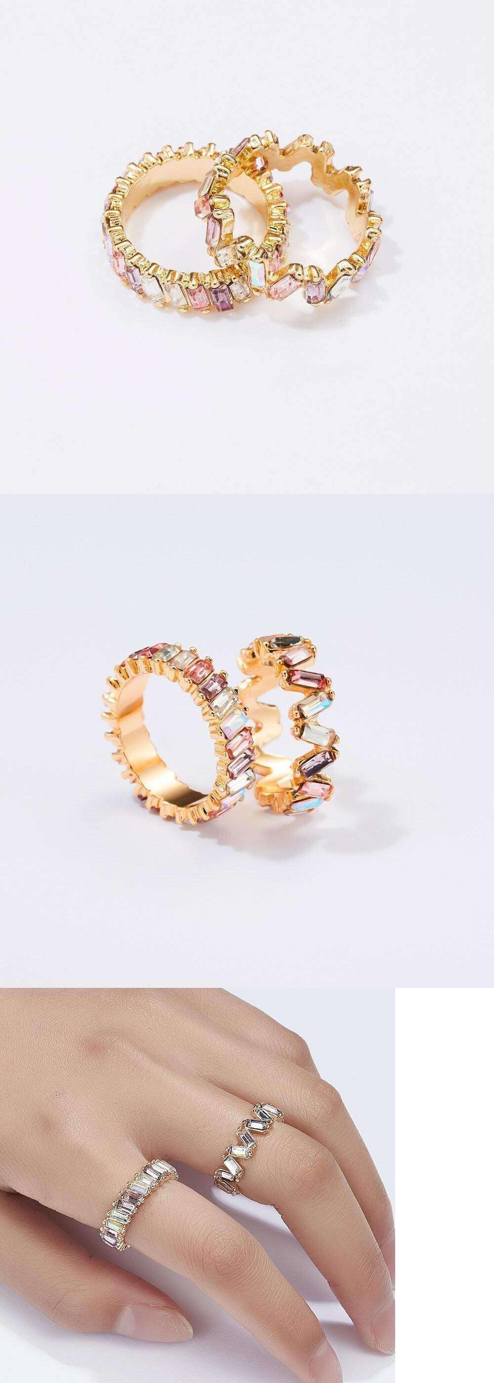 送料無料 1PC金メッキ合金長方形カラフルなラインストーンツイストフィンガーリングガールフレンド恋人ジュエリーギフト 指輪 アクセサリー AE1332221673678917022