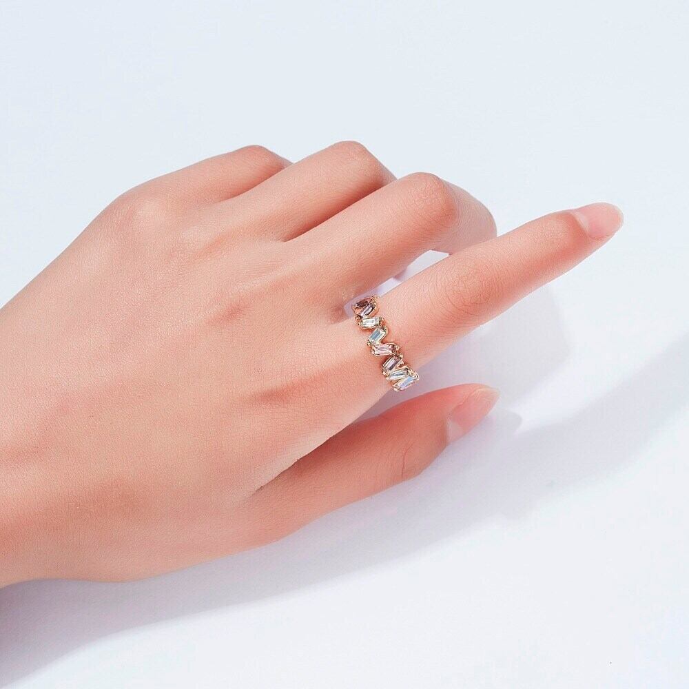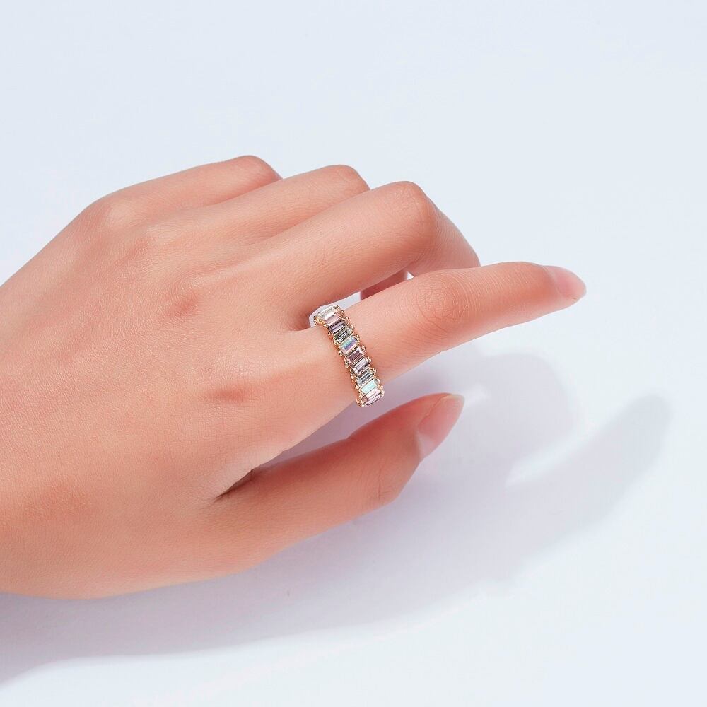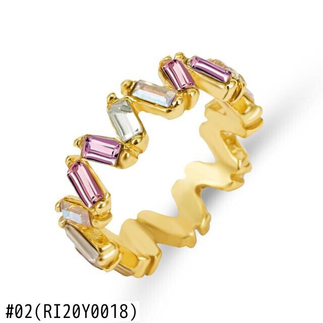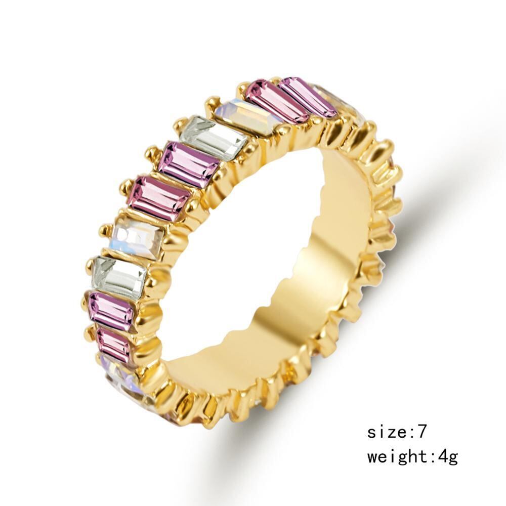 送料無料 1PC金メッキ合金長方形カラフルなラインストーンツイストフィンガーリングガールフレンド恋人ジュエリーギフト 指輪 アクセサリー AE1332221673678917022