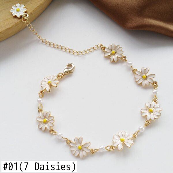 送料無料 Kpopかわいいフラワーブレスレットカラフルなデイジーペンダントレザーリンクチェーンブレスレット女性気質ジュエリー 大人ガーリー スウィート キュート カジュアル フラワーデザイン アクセサリー AE1332221650919550011