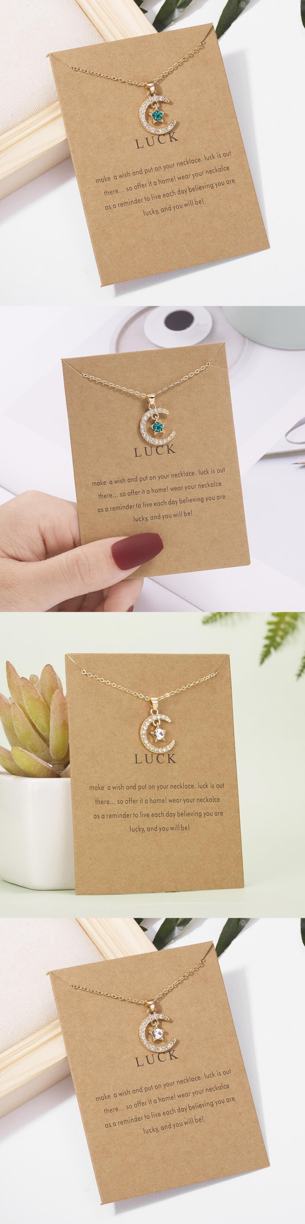 送料無料 思い出に残る誕生石ネックレス女性ムーンスタークリスタルペンダントリンクチェーンネックレスラッキーバースデージュエリーギフト レース アクセサリー AE133222162106245529