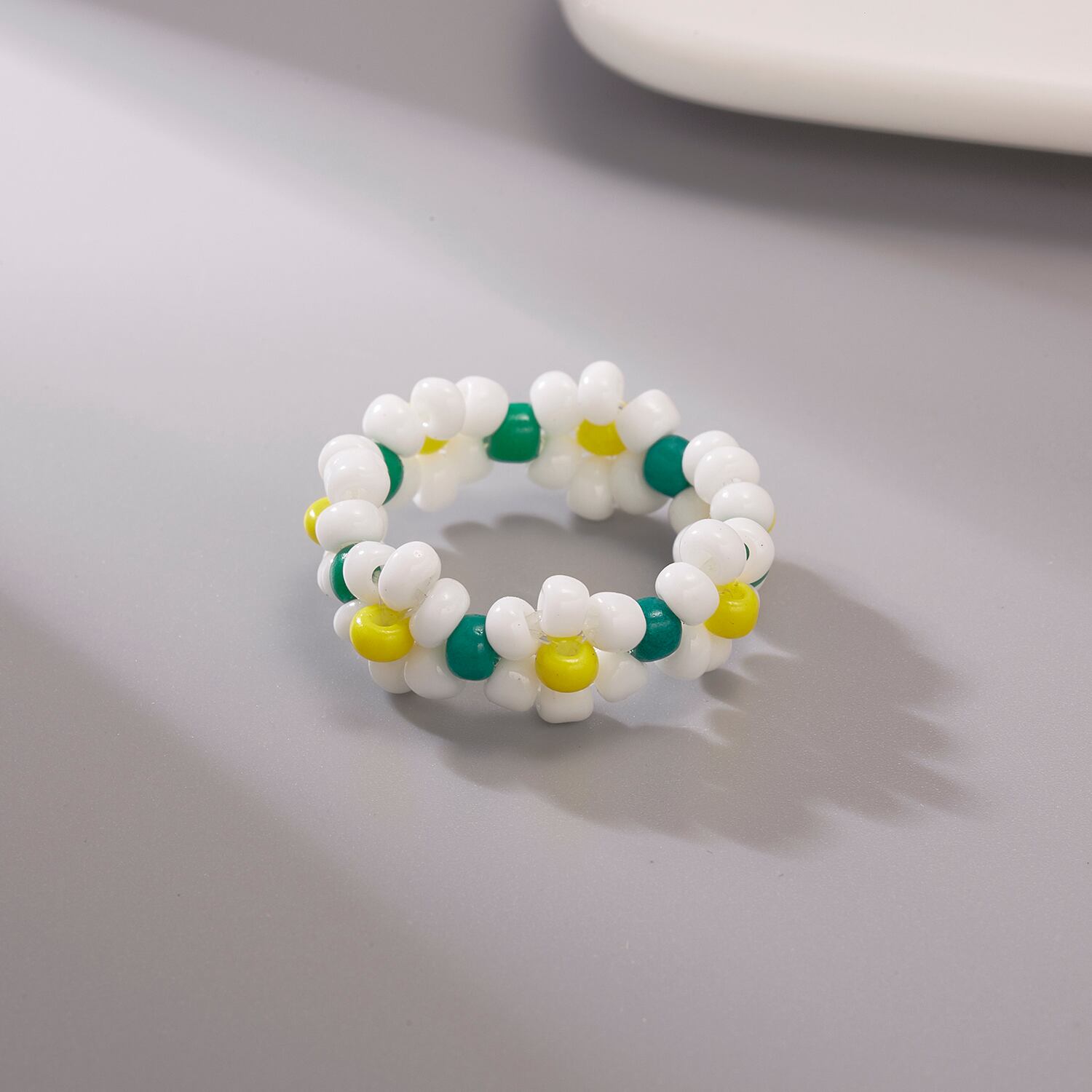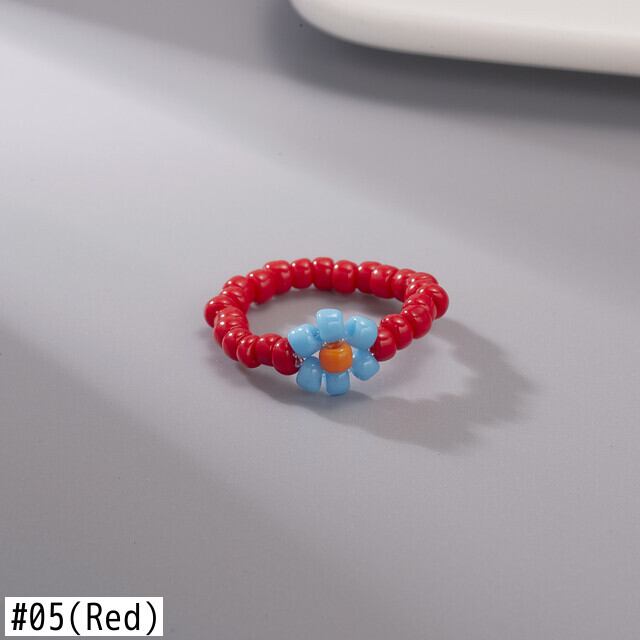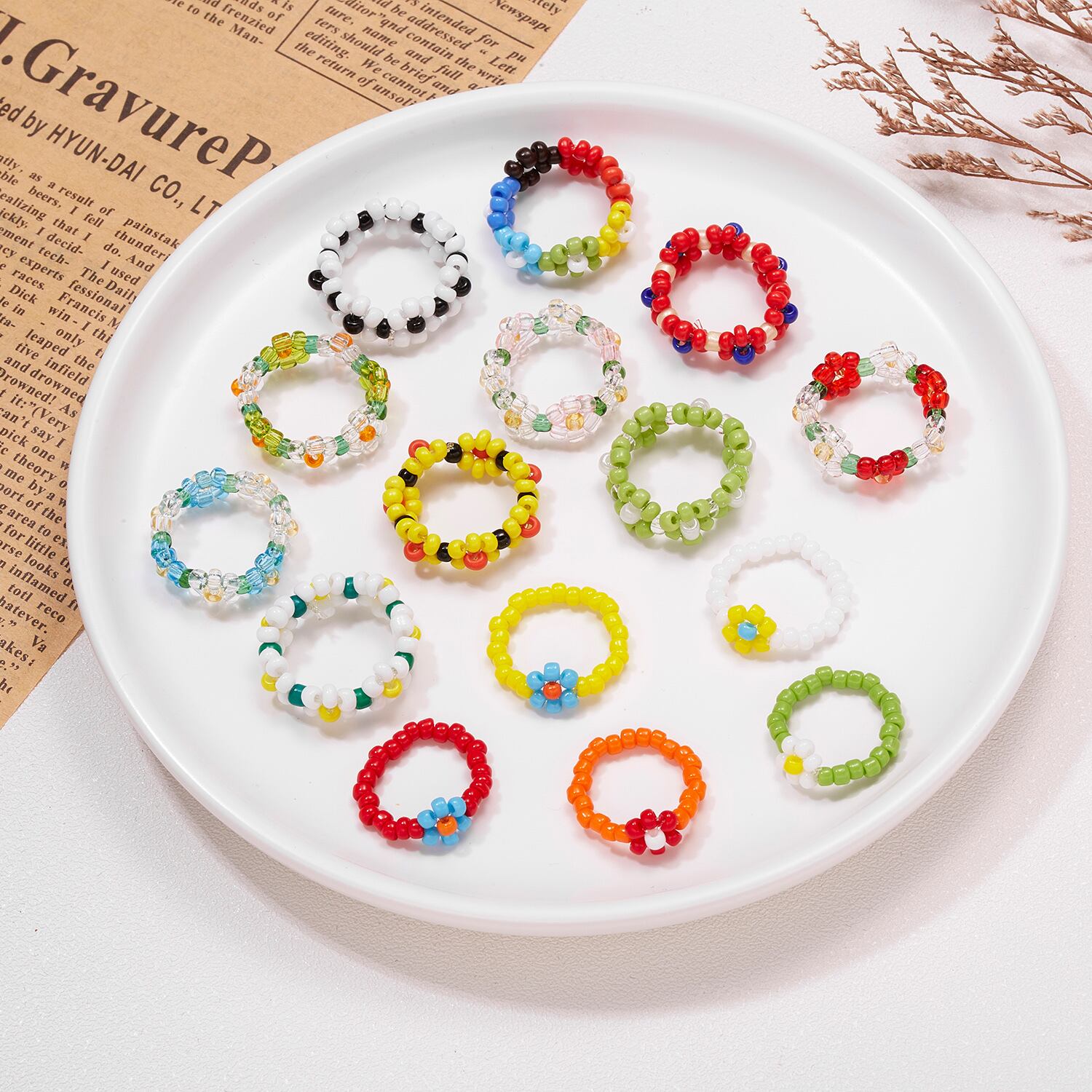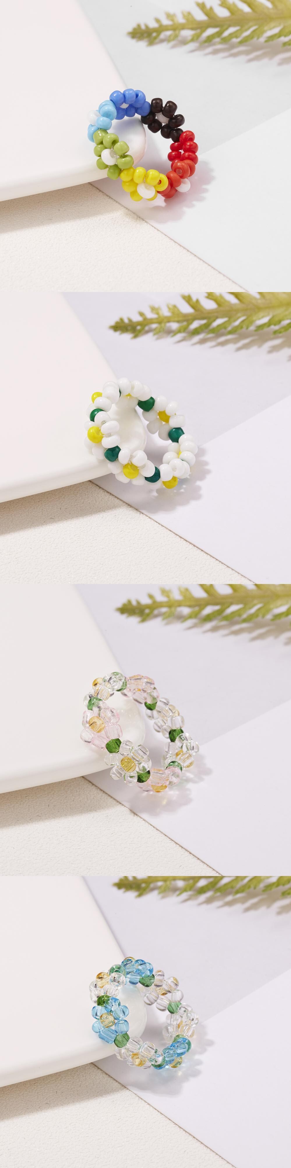 送料無料 かわいい気質フラワーリングカラフルなライスビーズ調節可能な弾性チェーンリング女性チャームジュエリーギフト エラスティック 伸縮 大人ガーリー スウィート キュート カジュアル アジャスタブル 指輪 フラワーデザイン アクセサリー AE1332221688290960358