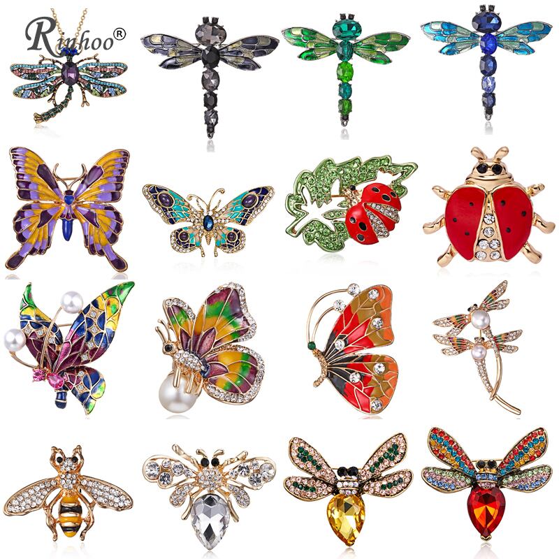 送料無料 リンフートンボバタフライミツバチクリスタルエナメル昆虫蜂ブローチピンジュエリーブローチピン女性の女の子 アクセサリー AE133222165641262115