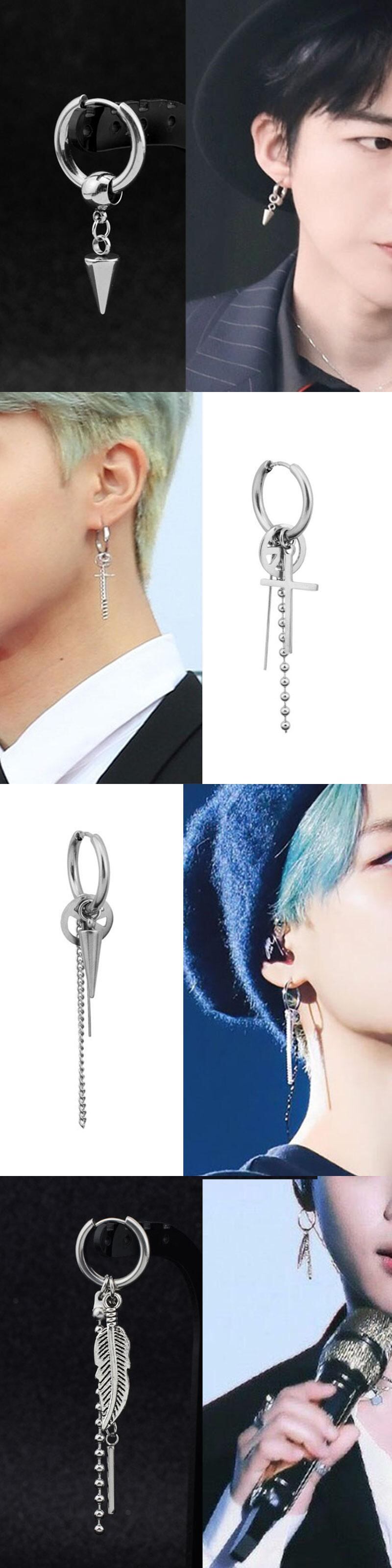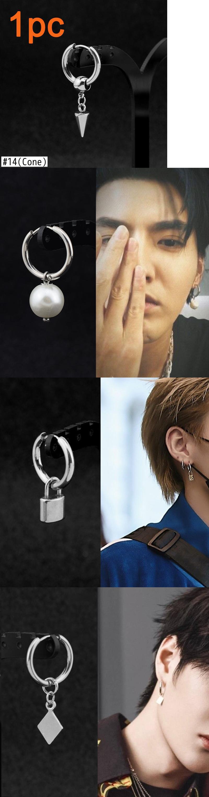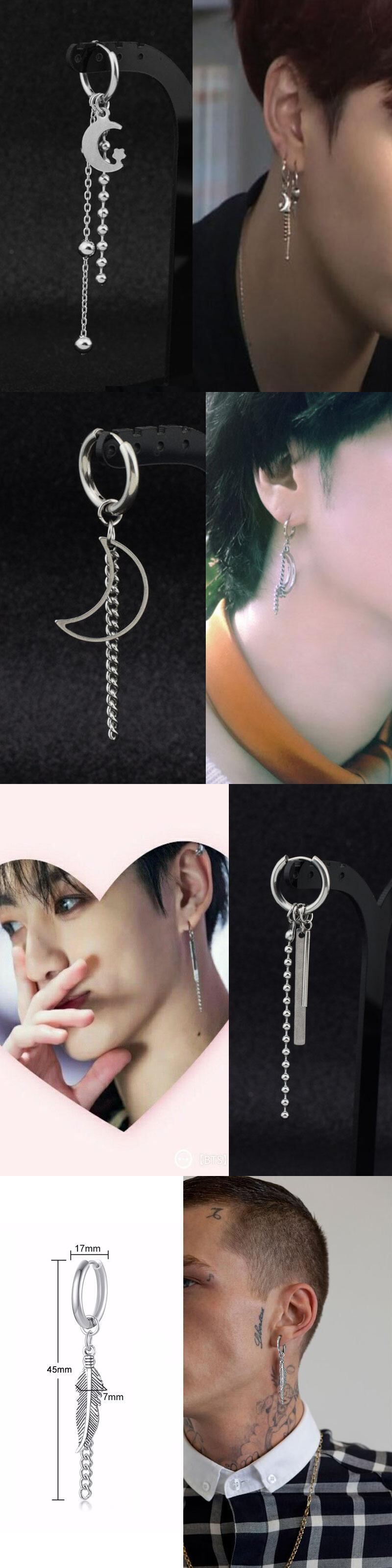 送料無料 1PCパンクシルバーカラーステンレススチールライトニングロック幾何学的なペンダントピアスピアス女性男性シンプルチェーンイヤリング 銀 アクセサリー AE1332221615700494930