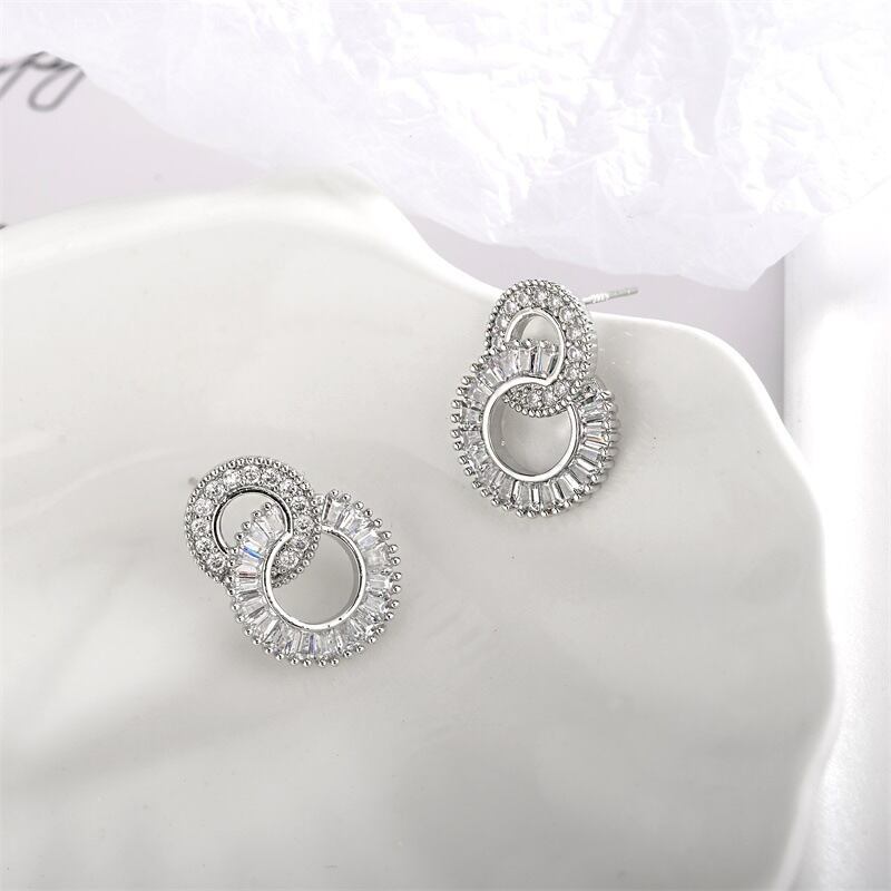 送料無料 ダブルサークルシャインジルコンピアスレディースシンプルスウィートスタッドピアスジュエリーギフト イヤリング 大人ガーリー キュート カジュアル リング 指輪 アクセサリー AE13322216723119424