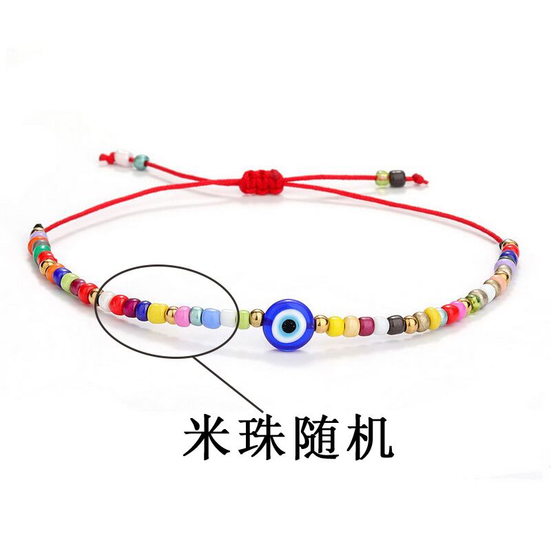 送料無料 ブルーイービルアイブレスレットハンドメイドウーブンロープチェーンカラーライスビーズブレスレット女性男性カップルラッキーアジャスタブルジュエリーギフト レッド アクセサリー AE1332221697338672685