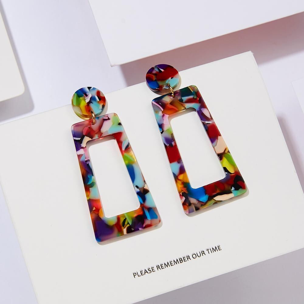 送料無料 Rinhooカラフルな幾何学的台形アクリルイヤリングステートメントイヤリングヴィンテージラージロングイヤリングジュエリー女性2021 指輪 ビンテージ アクセサリー AE1332221631929971344