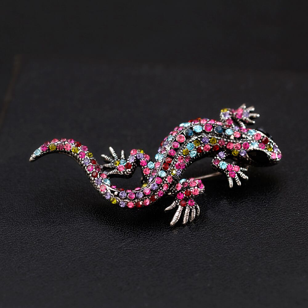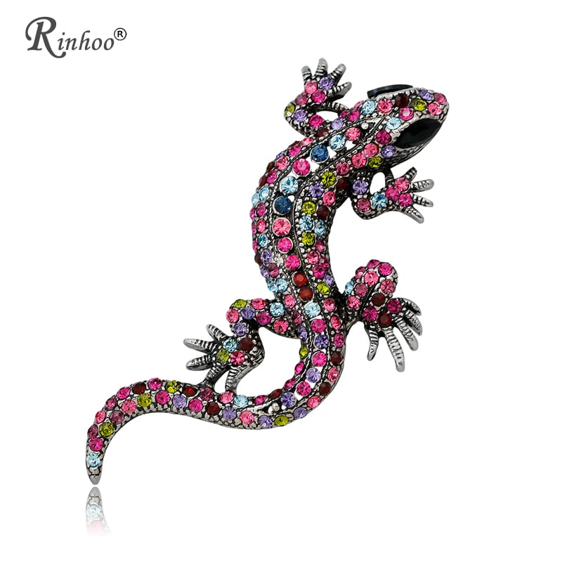 送料無料 RINHOOアニマルゲッコーブローチクリスタルフルラインストーンカラーメンズヴィンテージバッジジュエリーブローチピンレディース ビンテージ アクセサリー AE1332221654789091185