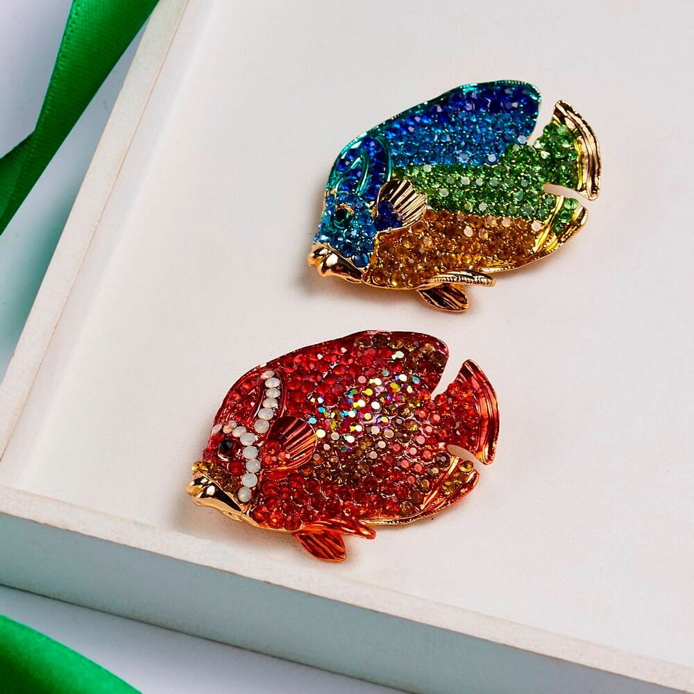 送料無料 RINHOOクリスタルエナメルトロピカルフィッシュピンブローチレディーススーツアクセサリーサマーブローチピンウェディングアクセサリー 夏物 アクセサリー AE13322216121695255