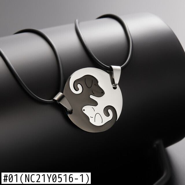送料無料 2PCSステンレス鋼カップルネックレス愛好家かわいい犬のペンダントレザーチェーンネックレス女性男性バレンタインデーギフト レース 大人ガーリー スウィート キュート カジュアル アクセサリー AE133222161627739820