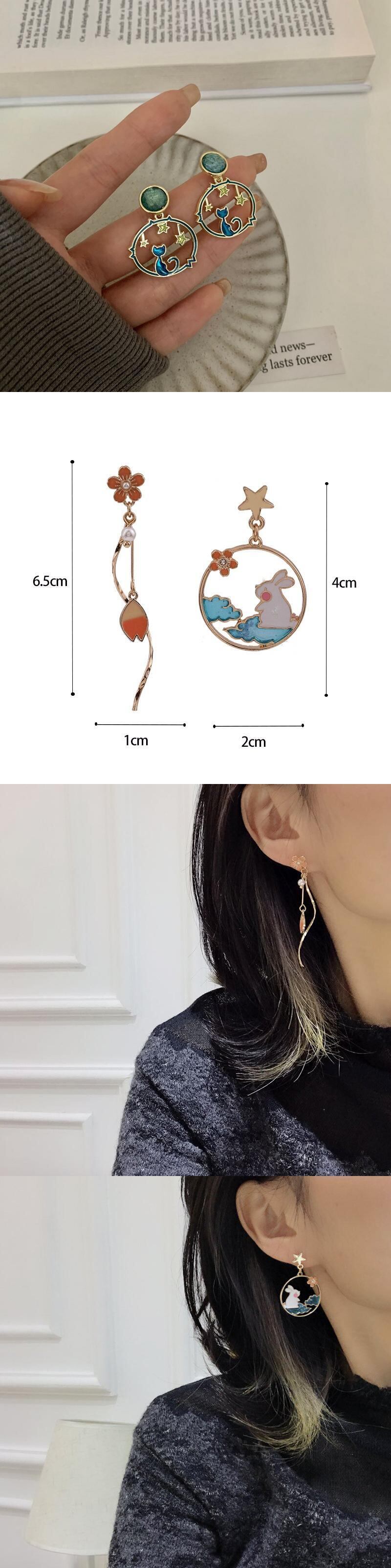 送料無料 非対称ウサギフラワーピアス女性かわいい動物ロングテルパールピアスピアスパーティージュエリーギフト イヤリング 大人ガーリー スウィート キュート カジュアル 真珠 リング 指輪 フラワーデザイン アクセサリー AE1332221637032950861