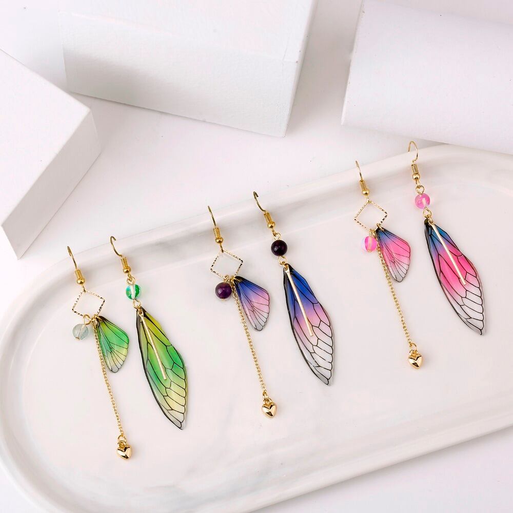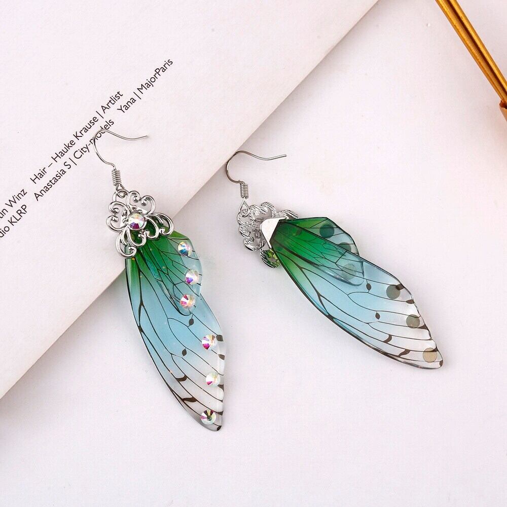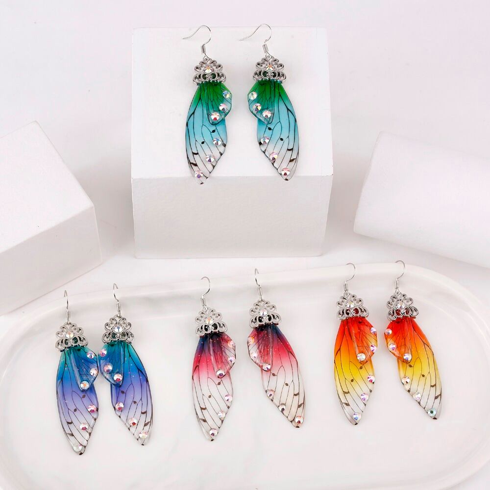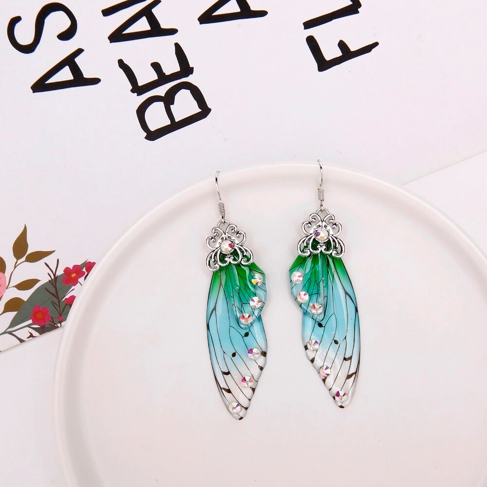 送料無料 ゴージャスな手作りの輝くラインストーンロングバタフライ蝉昆虫の翅イヤリング女性の繊細なジュエリーギフト アクセサリー AE1332221651679023948