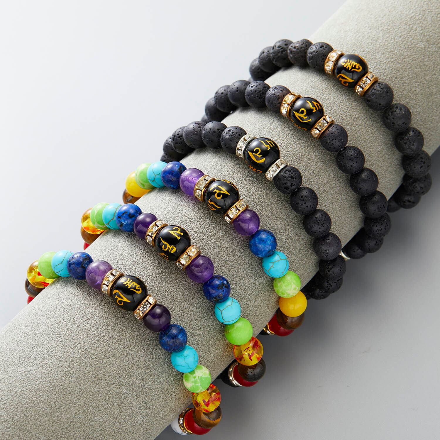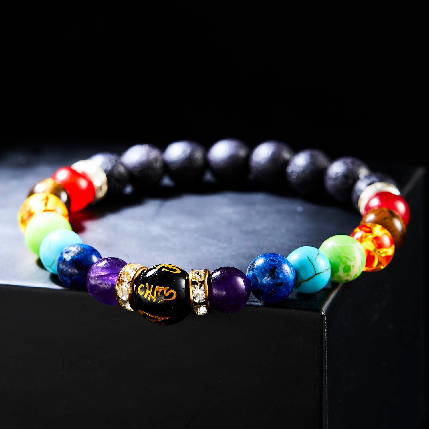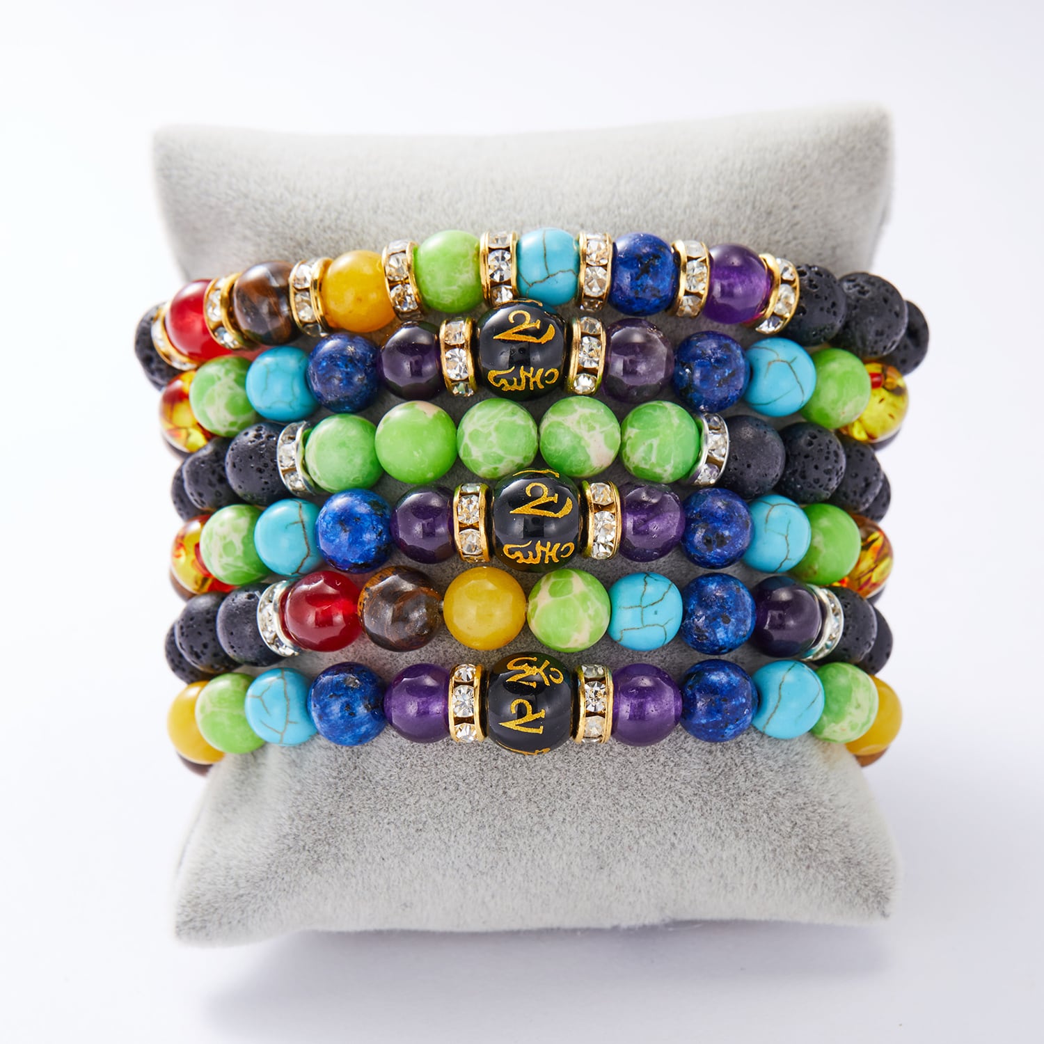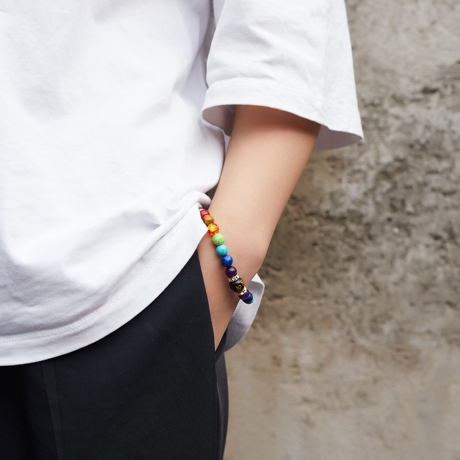 送料無料 手作りのカラフルな8mmセブンチャクラストーンビーズクリスタル弾性チェーンブレスレット女性男性ヒーリングヨガ瞑想ジュエリー エラスティック 伸縮 アクセサリー AE133222167003645092
