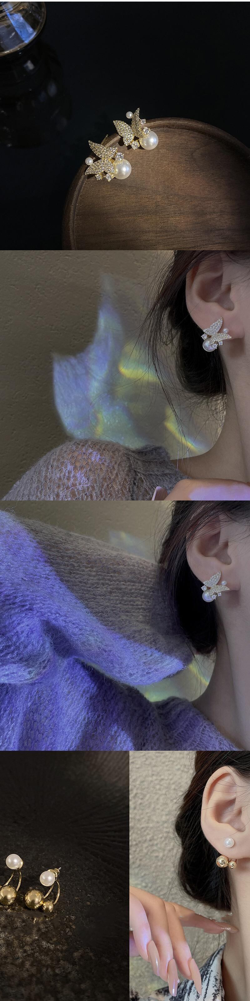 送料無料 フィッシュテールスタッドピアスレディースジュエリートレンディなシミュレートされたパールバタフライピアスピアスアクセサリー イヤリング 真珠 リング 指輪 人工 アクセサリー AE133222163637923880