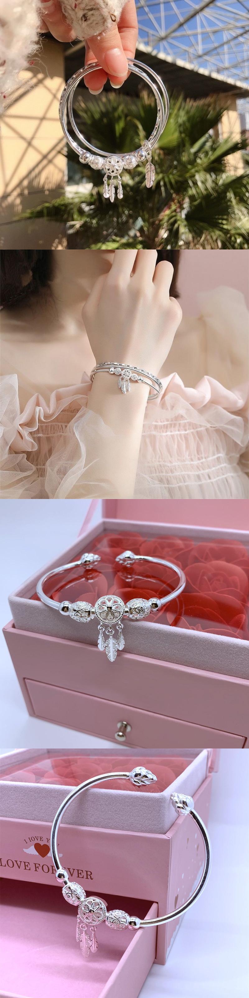 送料無料 3層ドリームキャッチャーテルフェザーブレスレット女性ラウンドビーズチャームブレスレット&バングルジュエリーギフト アクセサリー AE1332221667691542615
