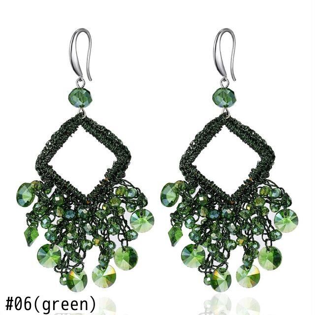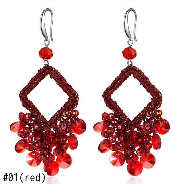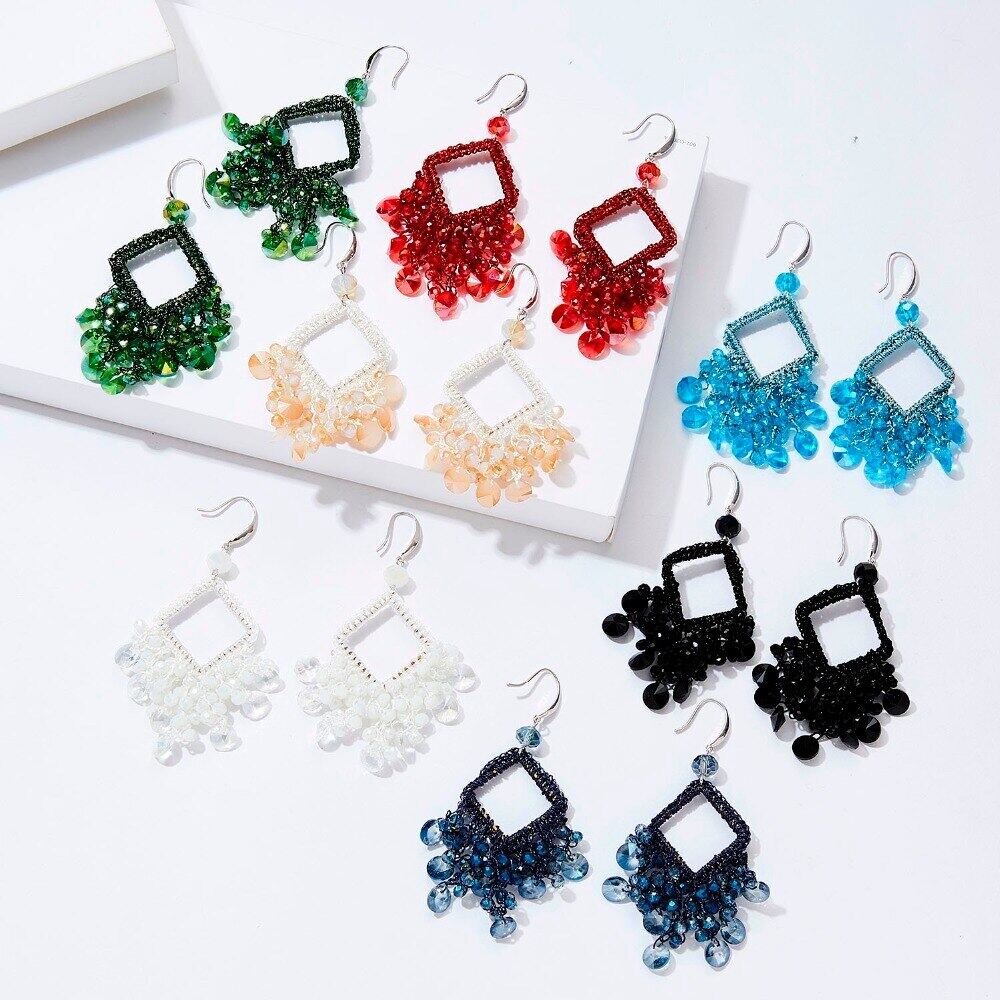 送料無料 エスニックテルイヤリング女性クリスタルビーズ手作り幾何学的な正方形ロングダングルチャームウェディングアクセサリーイヤリング 指輪 スクウェア アクセサリー AE133222168230787332
