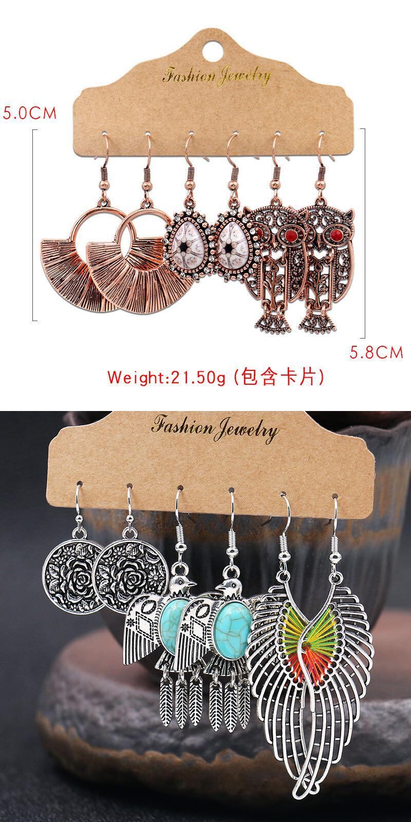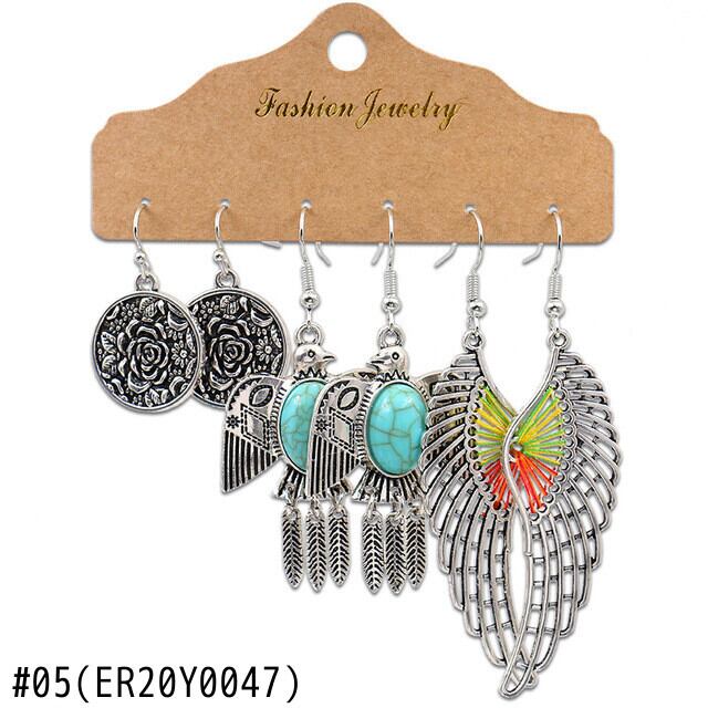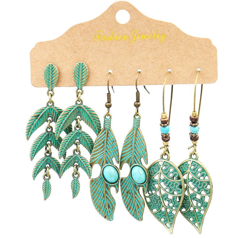 送料無料 1セット3ペアウィングラウンドテルウィメンズイヤリングリーフナチュラルストーン幾何学的四辺形セクターレトロコンビネーションイヤリング 指輪 天然 アクセサリー AE1332221646130338414