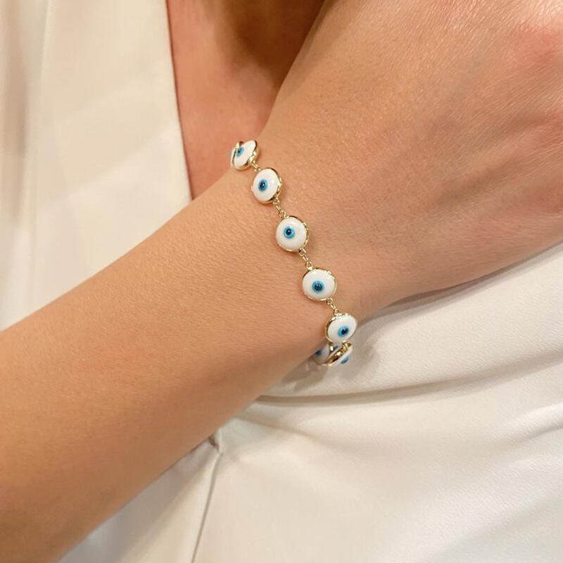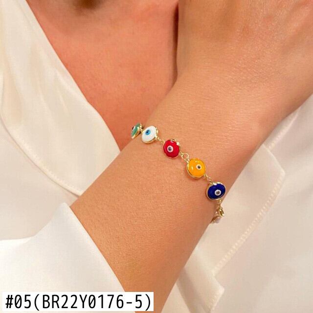 送料無料 20226mmメタルビーズブレスレット女性男性カラフルな邪眼チャームゴールドカラーリンクチェーンブレスレットジュエリーギフト アクセサリー AE1332221640101017729