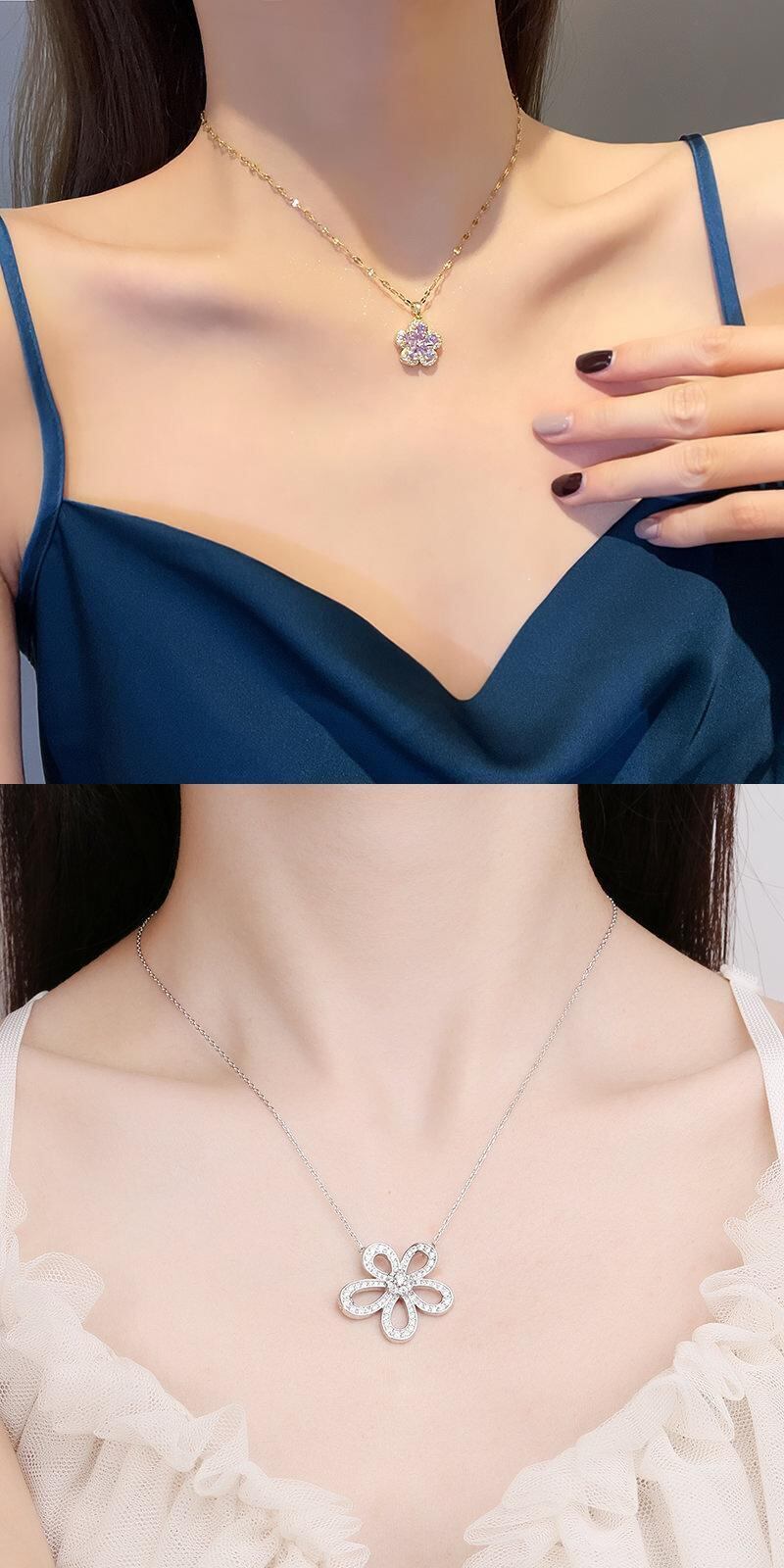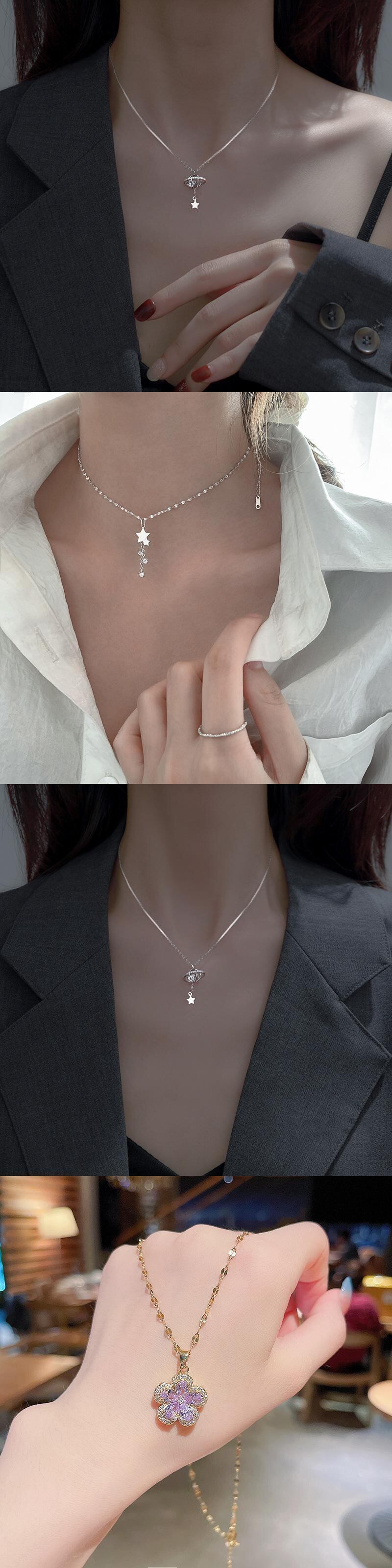 送料無料 シンプルスターテル鎖骨ネックレスジルコンリーフフェザーホローフラワーペンダントシルバーカラーネックレスレディースギフト レース フラワーデザイン 銀 アクセサリー AE1332221628449407545