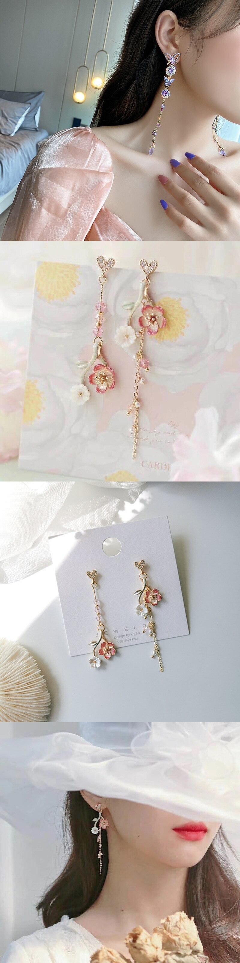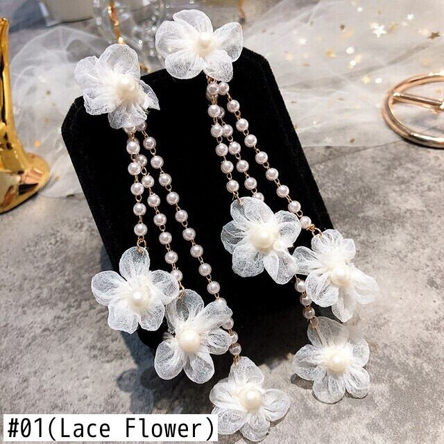 送料無料 ゴージャスな白いレースフラワーバタフライロングパールTelイヤリング女性気質ジュエリーギフト ホワイト 真珠 指輪 フラワーデザイン アクセサリー AE1332221625352043696