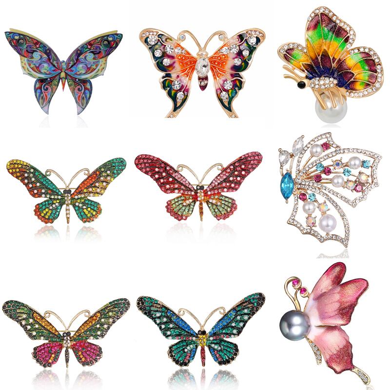 送料無料 手作りのカラフルなバタフライクリスタルラインストーンゴールドトーンブローチピン女性レディジュエリー母の日ギフト アクセサリー AE1332221656230767836