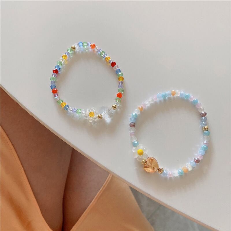 送料無料 Kpopかわいいビーズブレスレット女性混合色クリスタルビーズ花弾性ロープチェーンブレスレット&バングルチャームジュエリー エラスティック 伸縮 大人ガーリー スウィート キュート カジュアル フラワーデザイン アクセサリー AE133222162445478665