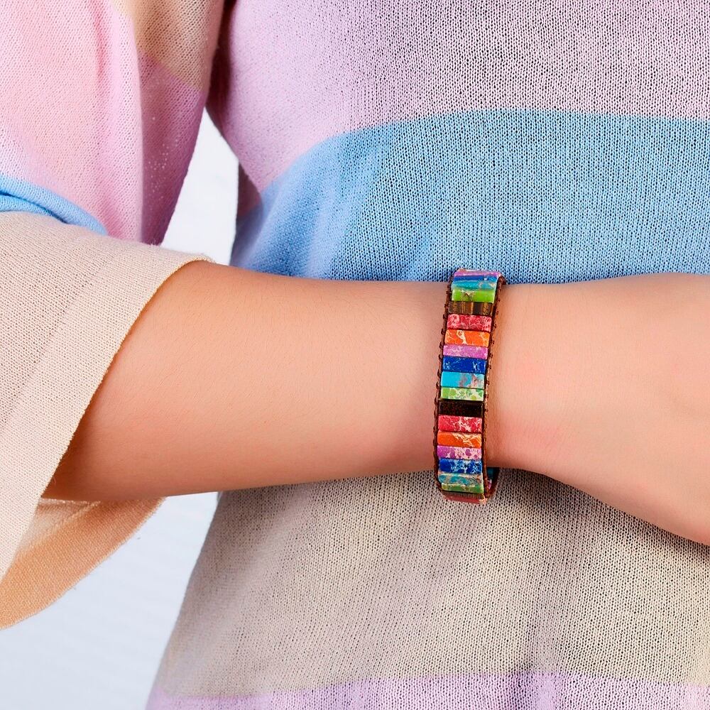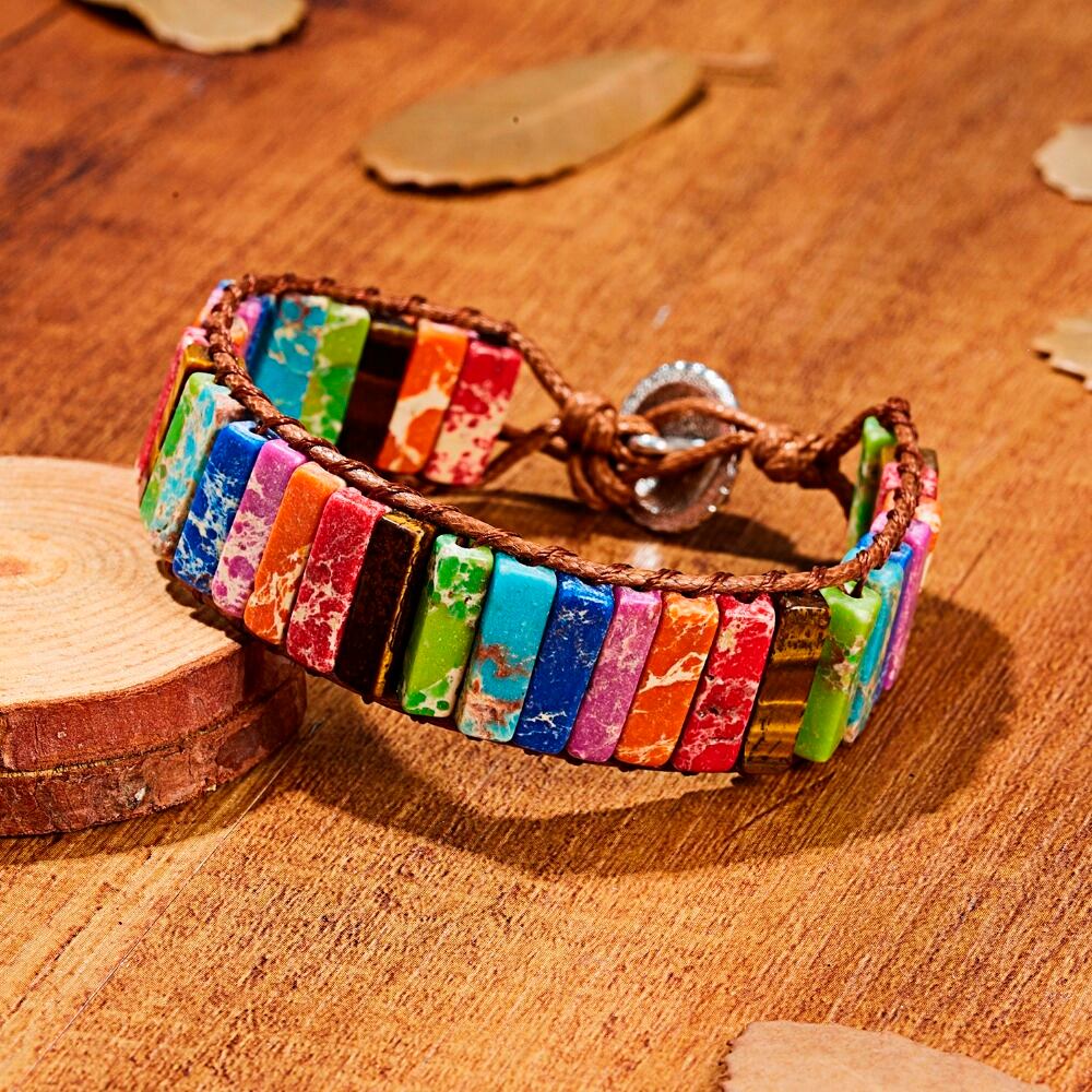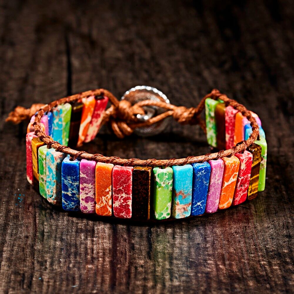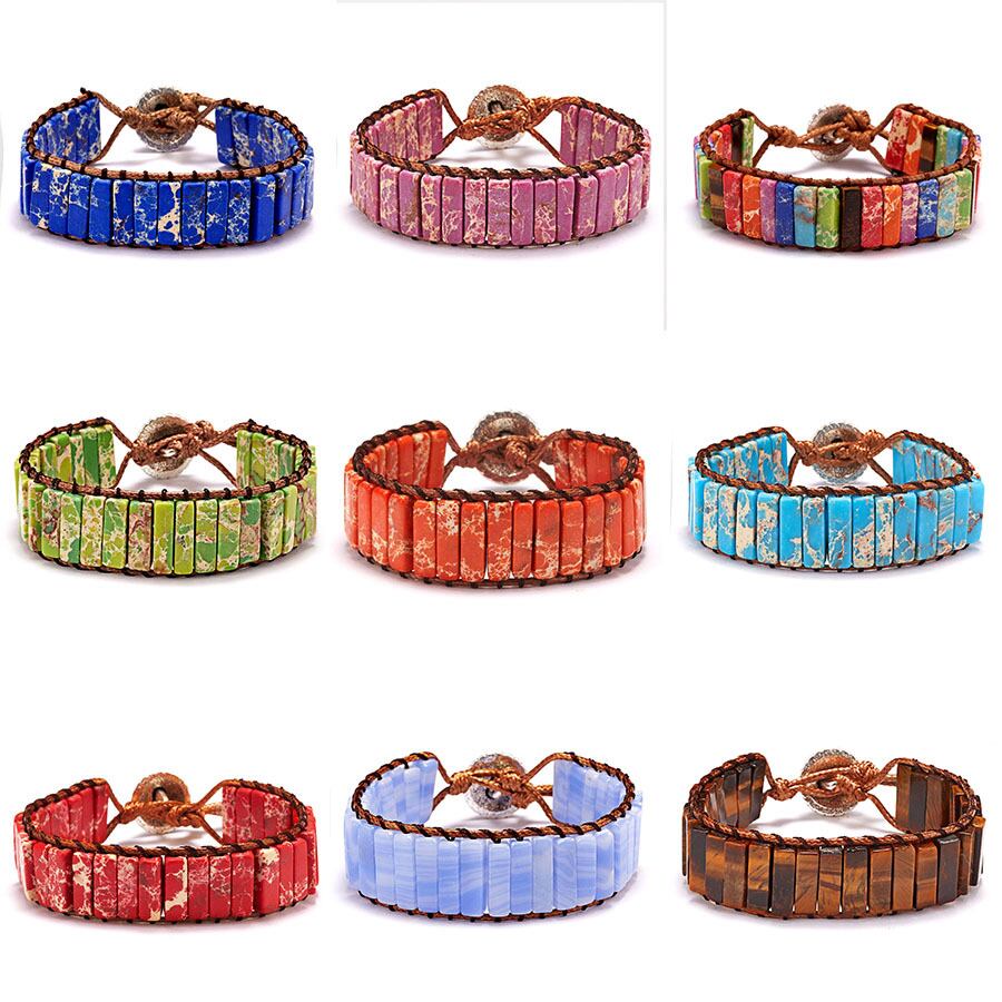 送料無料 長方形のチャクラブレスレットアクセサリーカラフルな皇帝石手作りのスリップノット調節可能なカップルブレスレットジュエリーギフト アジャスタブル アクセサリー AE1332221669829827492