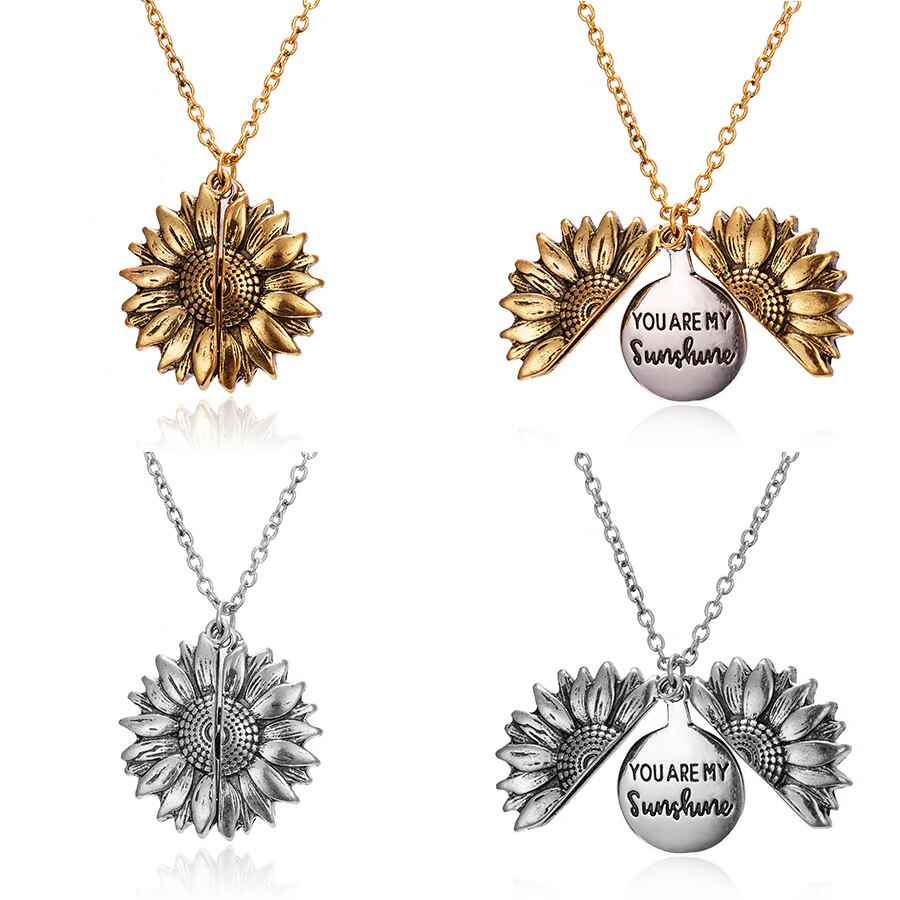 送料無料 ボヘミアあなたは私の太陽の光です開閉可能なロケットひまわりペンダントロングチェーンネックレスガールフレンドウェディングジュエリーギフト レース フラワーデザイン アクセサリー AE1332221690953923124