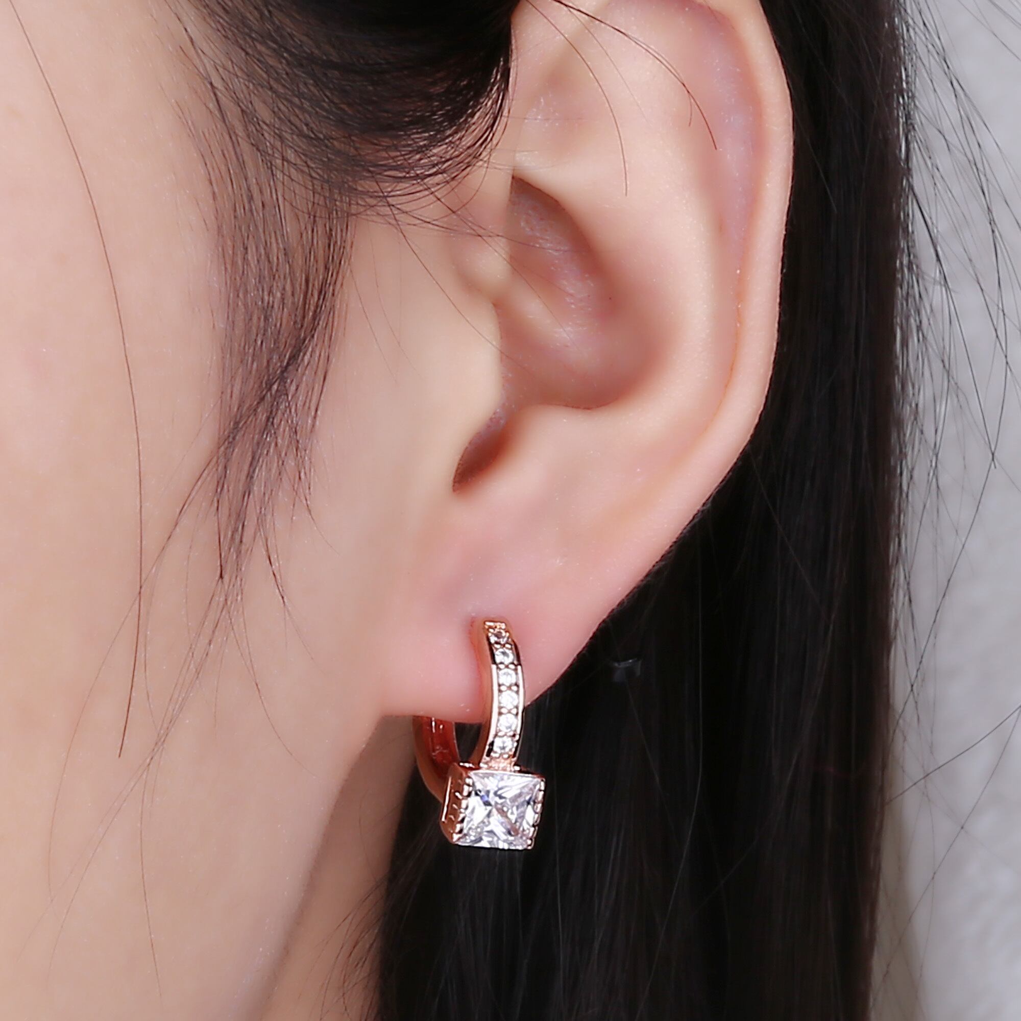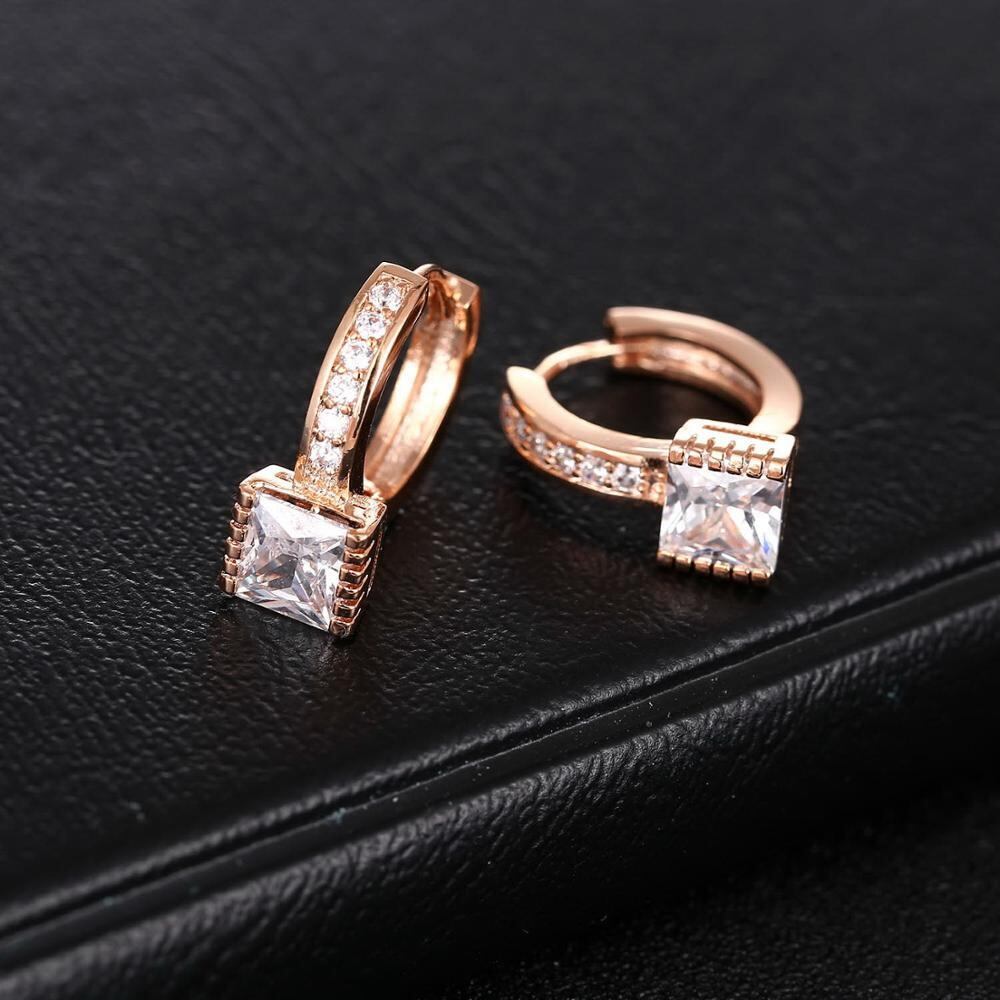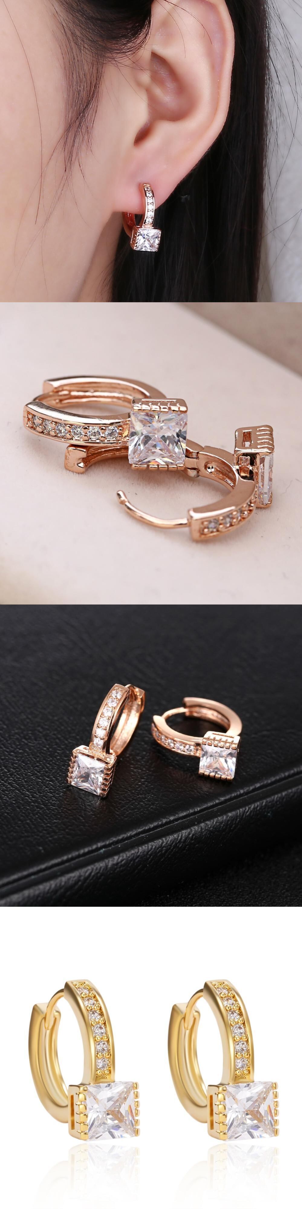 送料無料 ローズゴールドAAACZエレメントスタッドピアス女性シャイニングジルコンスクエアクリスタルイヤリングステートメントウェディングジュエリー 指輪 スクウェア アクセサリー AE133222164671475731